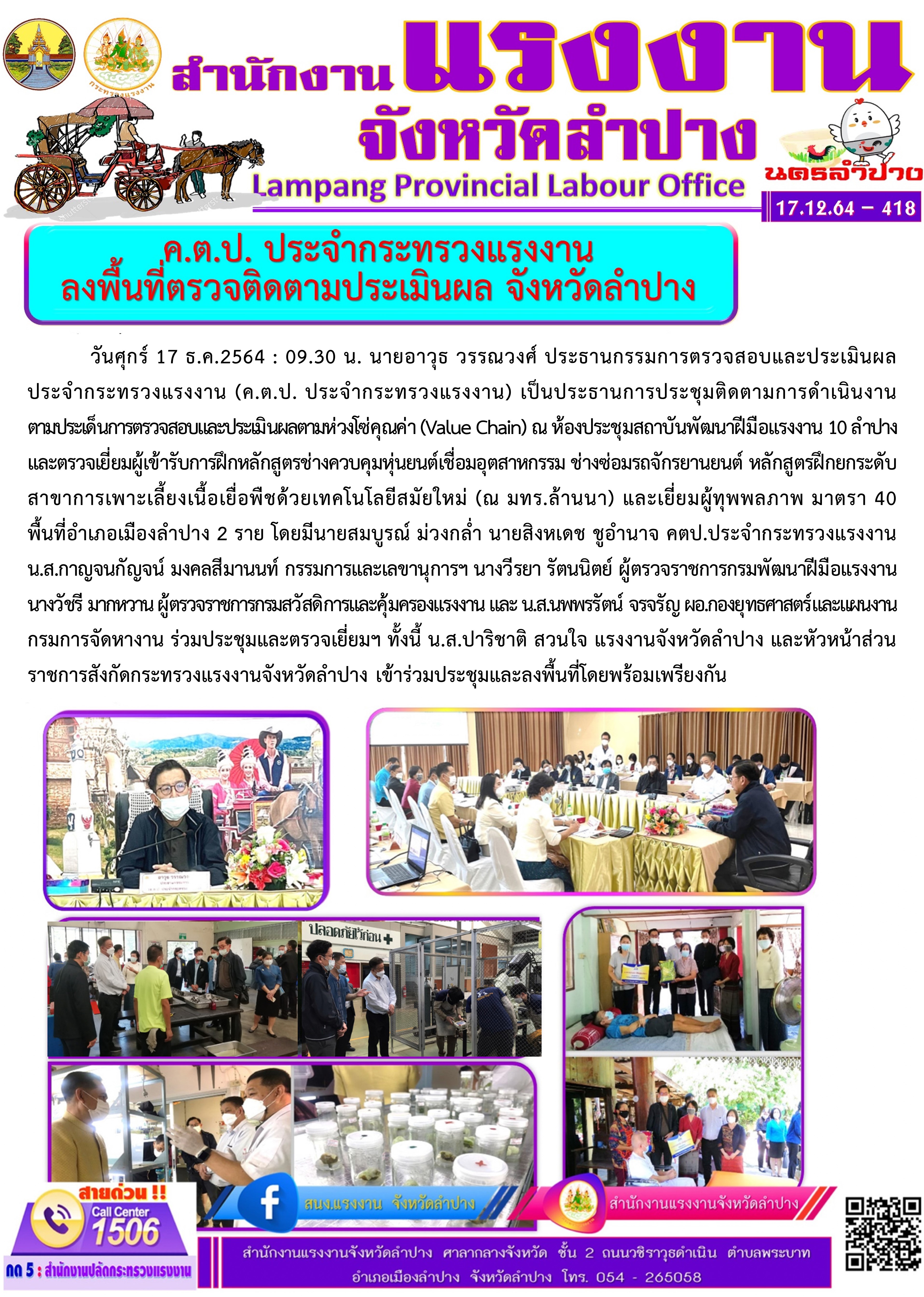 ค.ต.ป. ประจำกระทรวงแรงงาน ลงพื้นที่ตรวจติดตามประเมินผล จังหวัดลำปาง