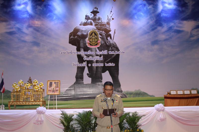 วันที่ 1 เมษายน 2562 เวลา 09.30 น. นางมาลัยอร หิรัณยรัชต์ แรงงานจังหวัดบุรีรัมย์ มอบหมายให้ นายวรรณพ สุทารัมย์ นักวิชาการแรงงานชำนาญการ ร่วมงานวันข้าราชการพลเรือน ประจำปี พ.ศ.2562 จังหวัดบุรีรัมย์ ณ หอประชุมจังหวัดบุรีรัมย์ โดยมีนายธีรวัฒน์ วุฒิคุณ ผู้ว่าราชการจังหวัดบุรีรัมย์ เป็นประธาน