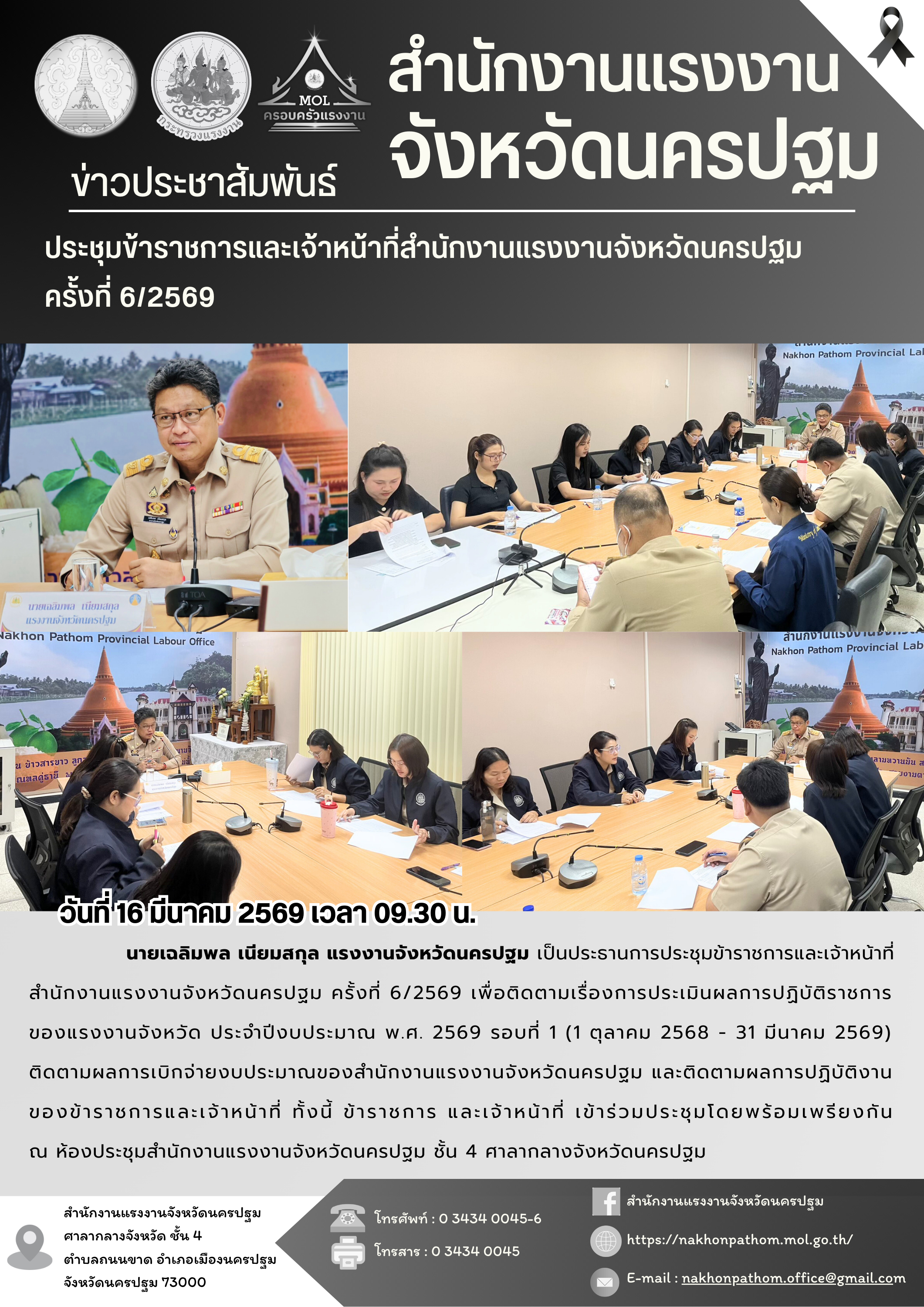 ประชุมข้าราชการและเจ้าหน้าที่สำนักงานแรงงานจังหวัดนครปฐม ครั้งที่ 6/2569