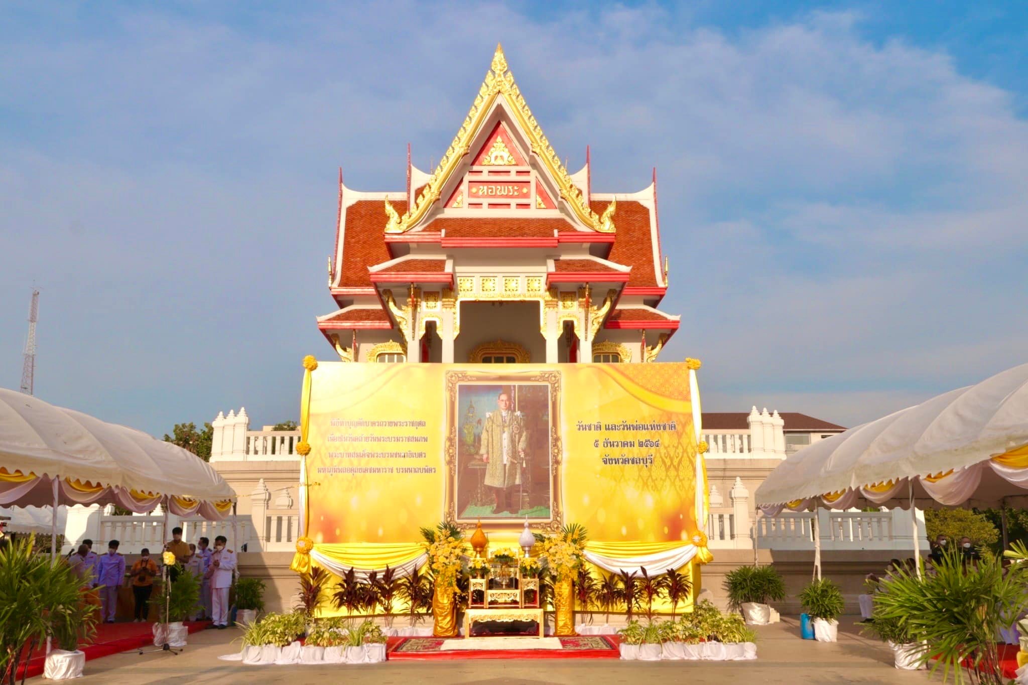 เวลา ๐๗.๓๐ น.พิธีทำบุญตักบาตรพระราชกุศลฯ จำนวน ๘๔ รูป ณ บริเวณหอพระพุทธสิหิงค์ อำเภอเมืองชลบุรี จังหวัดชลบุรี