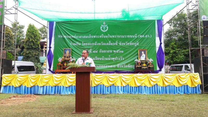 วันที่ 19 กันยายน 2561 เวลา 09.00 น นายณรงค์ วุ้นซิ้ว ผู้ว่าราชการจังหวัดชัยภูมิ ให้เกียรติเป็นประธาน เปิดงานโครงการจังหวัดเคลื่อนที่ ณ โรงงเรียนน้ำพุปางวัว อ.คอนสาร จ.ชัยภูมิ ทั้งนี้หน่วยงานในสังกัดกระทรวงแรงงานจังหวัดชัยภูมิร่วมออกหน่วยให้บริการประชาชน ซึ่งสำนักงานแรงงานจังหวัดชัยภูมิ โดยนางจิณพากาญจน์ หินเมืองเก่า นักวิชาการแรงงานชำนาญการ รับมอบหมายจากท่านแรงงานจังหวัดชัยภูมิ นางสาวอิสรี วีรกุลพิพัฒน์ เป็นผู้แทนออกหน่วยบริการในครั้งนี้