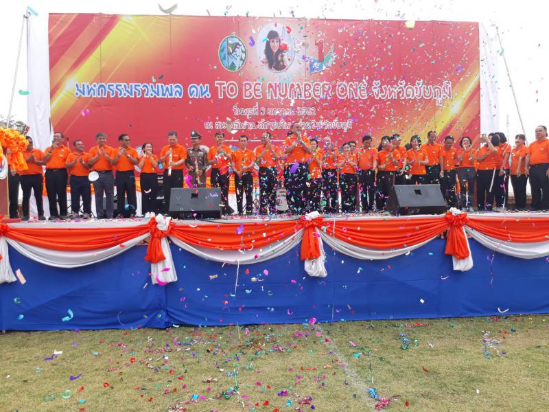 นางสาวอิสรี วีรกุลพิพัฒน์ แรงงานจังหวัดชัยภูมิ พร้อมด้วยหัวหน้าส่วนราชการและเจ้าหน้าที่หน่วยงานในสังกัดกระทรวงแรงงานจังหวัดชัยภูมิ ร่วมกับจังหวัดชัยภูมิ จัดงานวันมหกรรมรวมพลคน TO BE NUMBER ONE จังหวัดชัยภูมิ ในวันที่ 9 มกราคม พ.ศ. 2562 เวลา 09.00 น. ณ สนามกีฬากลางจังหวัดชัยภูมิ โดยมีนายณรงค์ วุ่นซิ้ว เป็นประธานในพิธีเปิดงาน ทั้งนี้ได้มีชมรม TO BE NUMBER ONE เข้าร่วมงาน ครบทุกประเภท จำนวนทั้งสิ้น 3,000 คน