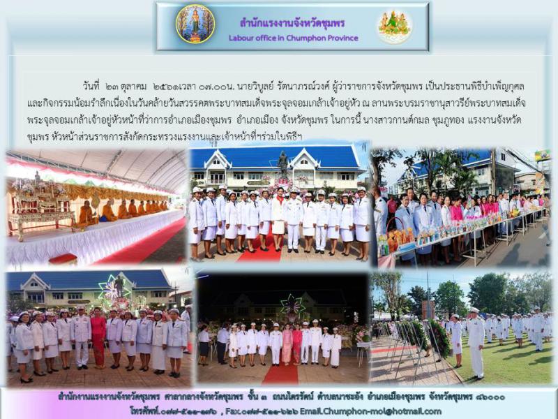 จังหวัดชุมพรจัดพิธีบำเพ็ญกุศลและกิจกรรมน้อมรำลึกเนื่องในวันคล้ายวันสวรรคตพระบาทสมเด็จพระจุลจอมเกล้าเจ้าอยู่หัว