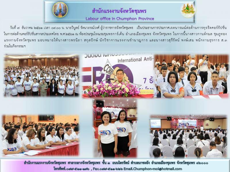 จังหวัดชุมพรประกาศเจตนารมณ์ร่วมต่อต้านคอร์รัปชั่น "คนไทยไม่ทนต่อการทุจริต"