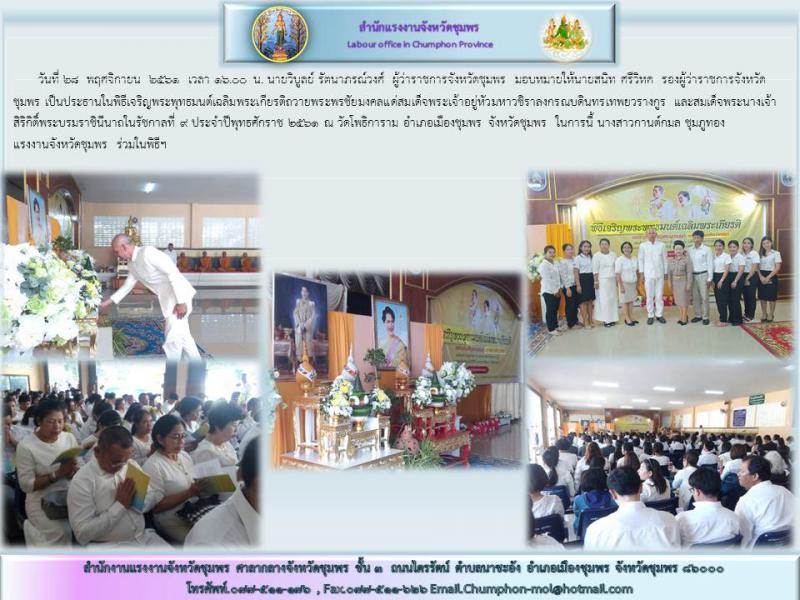 จังหวัดชุมพรร่วมพิธีเจริญพระพุทธมนต์เฉลิมพระเกียรติถวายพระพรชัยมงคลแด่ สมเด็จพระเจ้าอยู่หัวมหาวชิราลงกรณบดินทรเทพยวรางกูรและสมเด็จพระนางเจ้าสิริกิติ์ พระบรมราชินีนาถ ในรัชกาลที่ 9