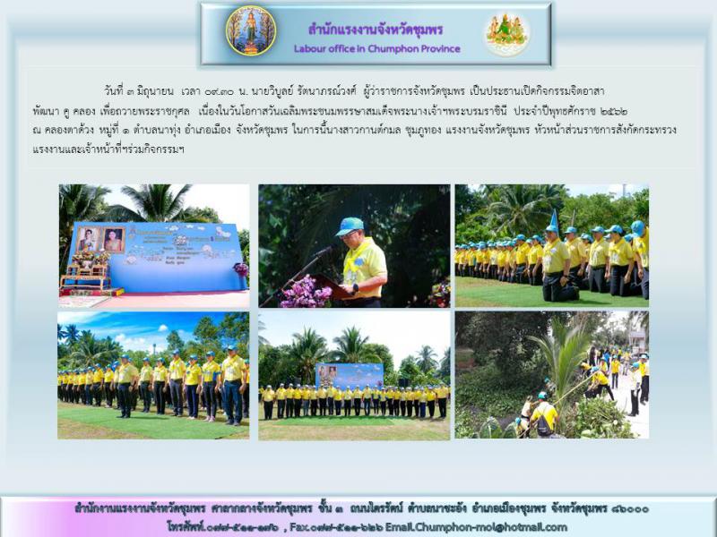 จังหวัดชุมพร จัดกิจกรรมจิตอาสาพัฒนาคูคลองเพื่อถวายพระราชกุศล เนื่องในโอกาสวันเฉลิมพระชนมพรรษาสมเด็จพระนางเจ้าฯพระบรมราชินี ประจำปีพุทธศักราช 2562