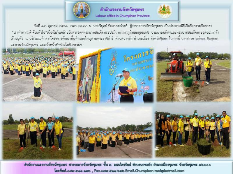 จังหวัดชุมพร จัดกิจกรรมจิตอาสา "เราทำความดี ด้วยหัวใจ" เนื่องในวันคล้ายวันสวรรคตพระบาทสมเด็จพระปรมินทรมหาภูมิพลอดุลยเดช บรมนาถบพิตร และพระบาทสมเด็จพระจุลจอมเกล้าเจ้าอยู่หัว