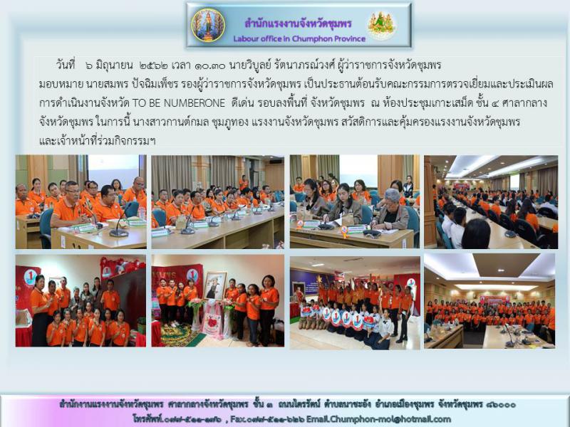 จังหวัดชุมพร จัดกิจกรรมต้อนรับคณะกรรมการตรวจเยี่ยมและประเมินผลการดำเนินงานจังหวัด TO BE NUMBERONE ดีเด่น รอบลงพื้นที่ จังหวัดชุมพร