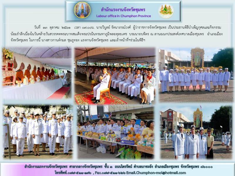 จังหวัดชุมพร จัดพิธีบำเพ็ญกุศลและกิจกรรมน้อมรำลึกเนื่องในวันคล้ายวันสวรรคตพระบาทสมเด็จพระปรมินทรมหาภูมิพลอดุลยเดช บรมนาถบพิตร
