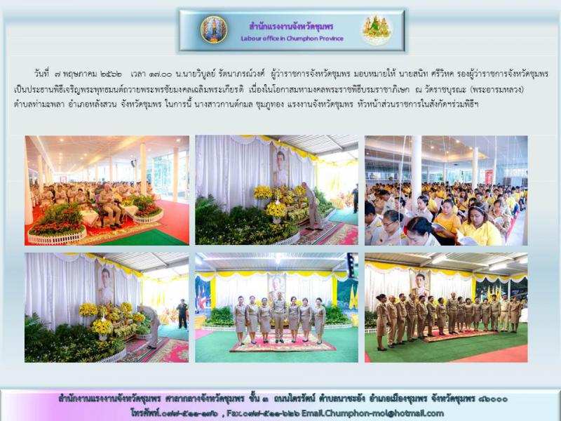 จังหวัดชุมพร จัดพิธีเจริญพระพุทธมนต์ถวายพระพรชัยมงคลเฉลิมพระเกียรติ เนื่องในโอกาสมหามงคลพระราชพิธีบรมราชาภิเษก