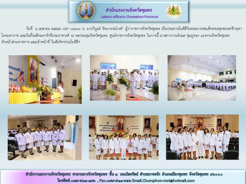 จังหวัดชุมพร จัดพิธีในวันพระบาทสมเด็จพระพุทธยอดฟ้าจุฬาโลกมหาราช และวันที่ระลึกมหาจักรีบรมราชวงศ์