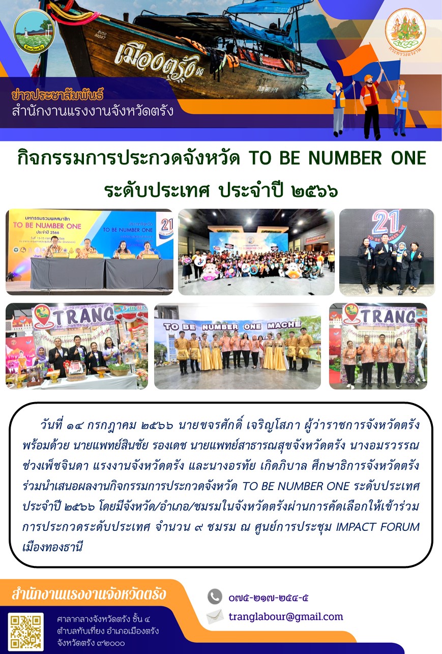 สรจ.ตรัง ร่วมนำเสนอผลงานกิจกรรมการประกวดจังหวัด TO BE NUMBER ONE ระดับประเทศ ประจำปี 2566