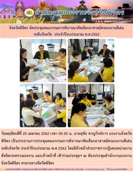 จังหวัดพิจิตร จัดประชุมคณะกรรมการพิจารณาคัดเลือกอาสาสมัครแรงงานดีเด่น ระดับจังหวัด ประจำปีงบประมาณ พ.ศ.2562