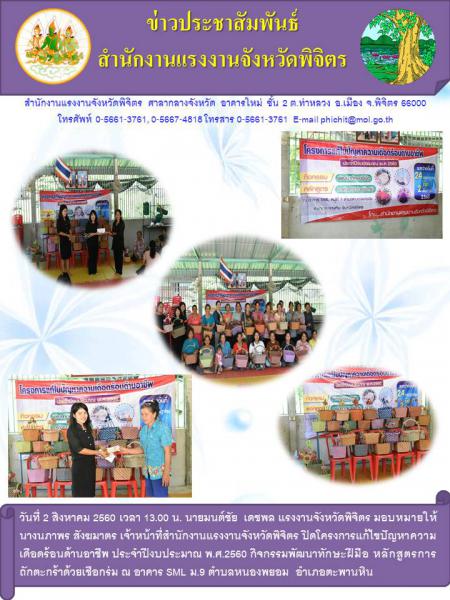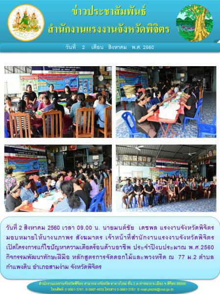 จังหวัดพิจิตร ดำเนินโครงการแก้ไขปัญหาความเดือดร้อนด้านอาชีพ ประจำปีงบประมาณ พ.ศ.2560