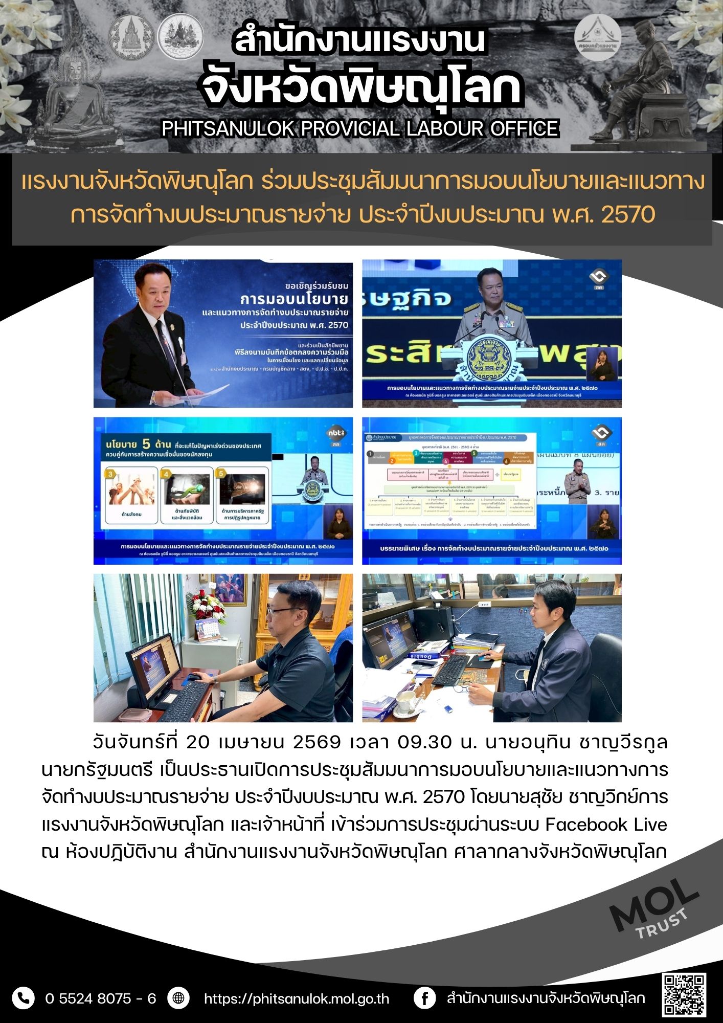 แรงงานจังหวัดพิษณุโลก ร่วมประชุมสัมมนาการมอบนโยบายและแนวทางการจัดทำงบประมาณรายจ่าย ประจำปีงบประมาณ พ.ศ. 2570