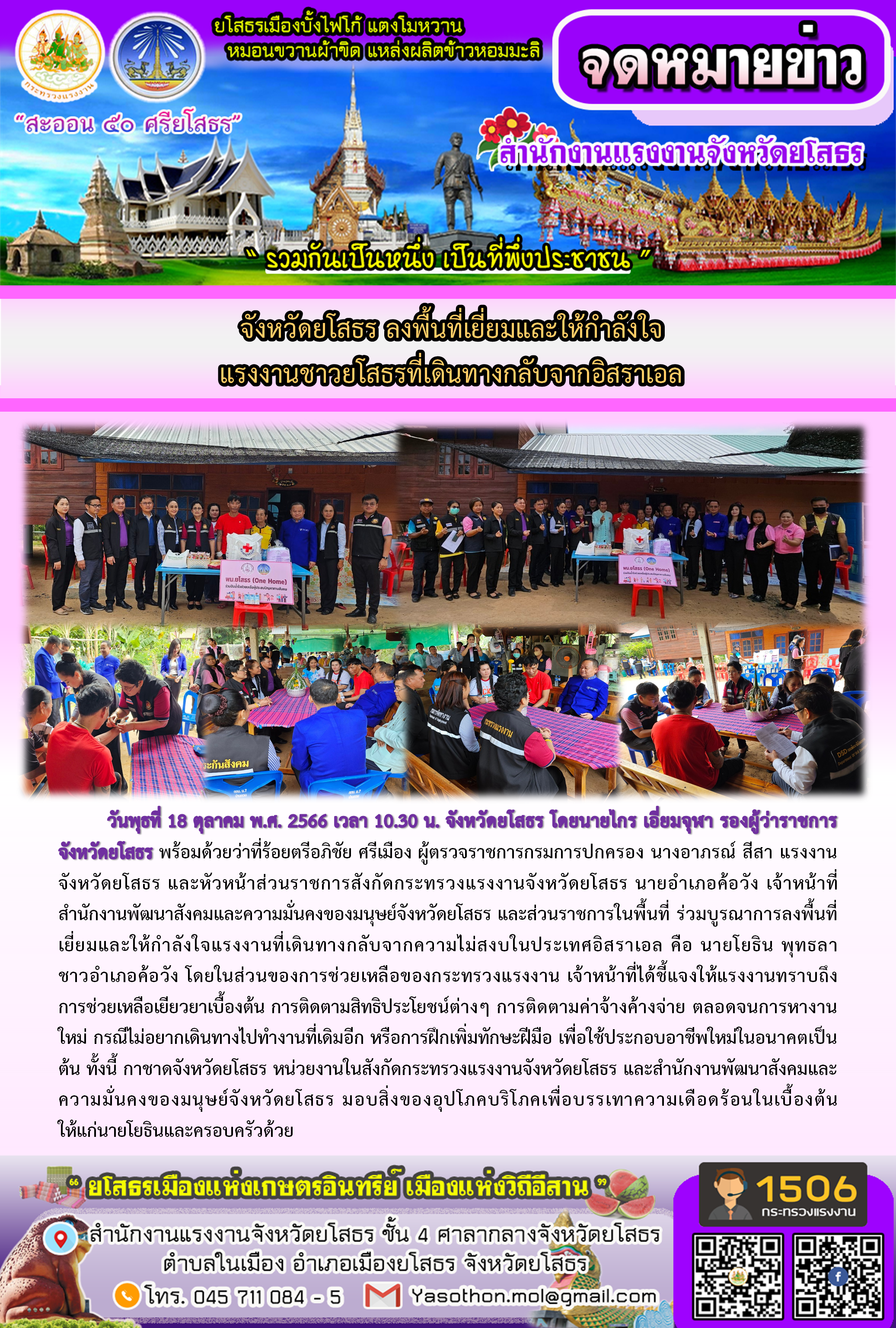 สรจ.ยโสธร ลงพื้นที่เยี่ยมและให้กำลังใจ แรงงานชาวยโสธรที่เดินทางกลับจากอิสราเอล
