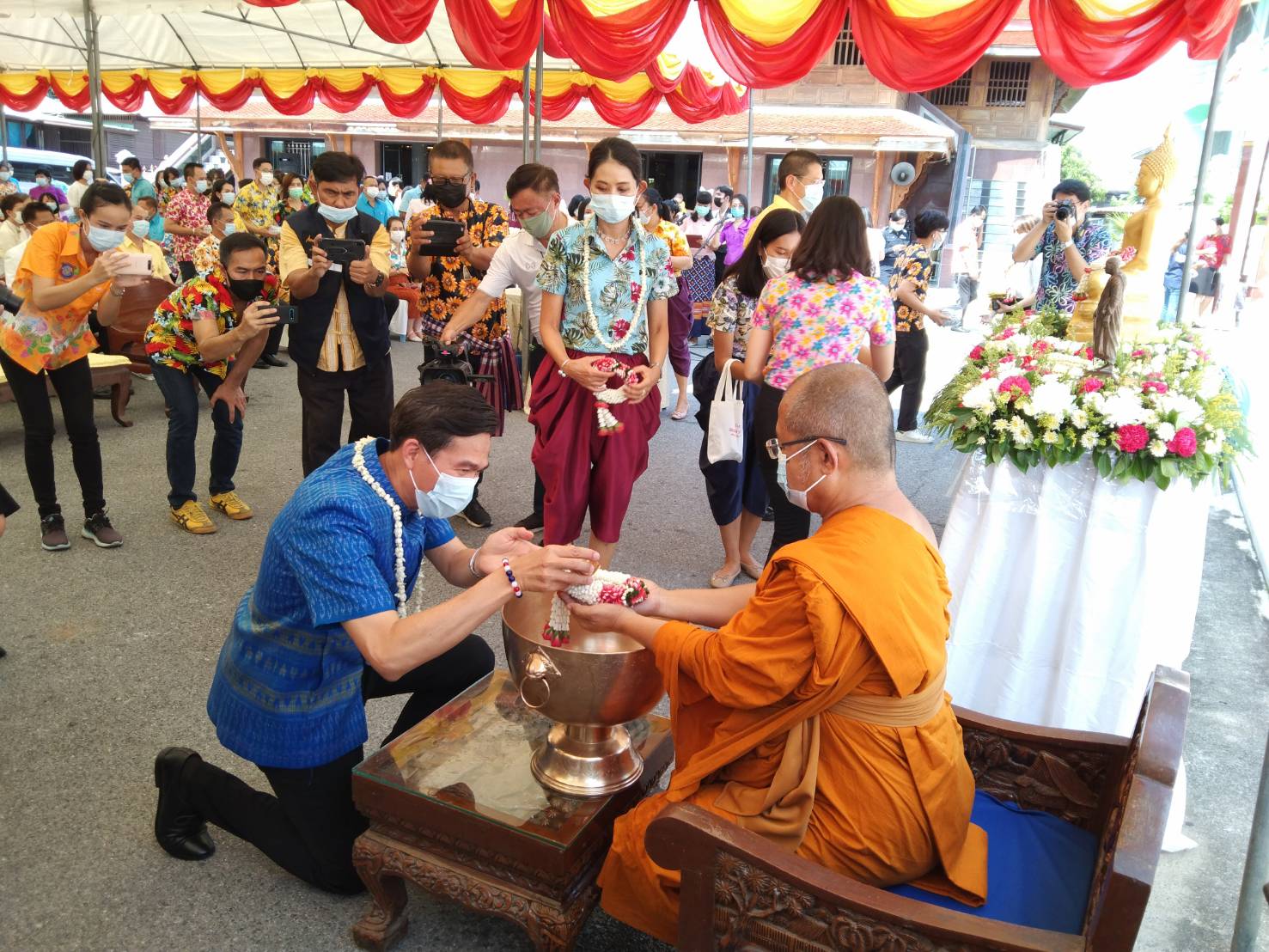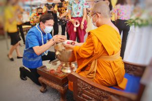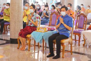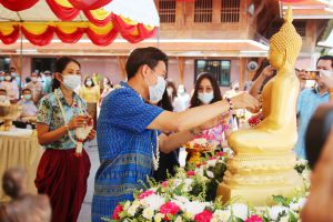วันศุกร์ที่ 9 เมษายน 2564 เวลา 09.30 น. นายนิวัฒน์ รุ่งสาคร ผู้ว่าราชการจังหวัดลพบุรี เป็นประธานฝ่ายฆราวาส นำหัวหน้าส่วนราชการ ข้าราชการ ทหาร ตำรวจ และประชาชนชาวลพบุรี ร่วมกิจกรรม “ทำบุญ สรงน้ำพระ เพื่อความเป็นสิริมงคล” เนื่องในเทศกาลวันสงกรานต์ ประจำปี 2564 ณ วัดกวิศรารามราชวรวิหาร ตำบลท่าหิน อำเภอเมืองลพบุรี จังหวัดลพบุรี โดยมี พระเทพเสนาบดี เจ้าคณะจังหวัดลพบุรี เป็นประธานฝ่ายสงฆ์ ดำเนินการภายใต้มาตรการการควบคุมโรคตามพระราชบัญญัติโรคติดต่อ พ.ศ.2558 เป็นการส่งเสริมสุขอนามัยที่ดีของผู้เข้าร่วมกิจกรรม กิจกรรมภายในงาน มีพิธีเจริญพระพุทธมนต์ และพิธีสรงน้ำพระ ในการนี้ นางสาวสุกัญญา องค์วิเศษไพบูลย์ แรงงานจังหวัดลพบุรี มอบหมายให้ นางปทุมมาตย์ สมมัง เจ้าพนักงานการเงินและบัญชีชำนาญงาน