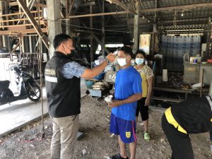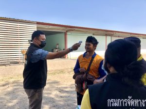 วันพุธที่ 9 ธันวาคม 2563 เวลา 10.00 น. นางสาวสุกัญญา องค์วิเศษไพบูลย์ แรงงานจังหวัดลพบุรี มอบหมายให้ นายสุรวิสิฐ ทาบุตร เจ้าหน้าที่สำนักงานแรงงานจังหวัดลพบุรี เข้าร่วมบูรณาการการตรวจสอบนายจ้าง/สถานประกอบการที่จ้างแรงงานต่างด้าวสัญชาติเมียนมา ในพื้นที่อำเภอโคกสำโรง เพื่อให้ปฏิบัติให้ถูกต้องตามกฎหมายและเป็นการป้องกันการแพร่ระบาดของโรคติดเชื้อไวรัสโคโรนา 2019 (โควิด-19) ซึ่งเป็นการทำงานแบบบูรณาการของสำนักงานแรงงานจังหวัดลพบุรี สำนักงานจัดหางานจังหวัดลพบุรี สำนักงานสาธารณสุขจังหวัดลพบุรี และตรวจคนเข้าเมืองจังหวัดลพบุรี ผลการตรวจสถานประกอบการ จำนวน 5 แห่ง พบแรงงานต่างด้าวสัญชาติเมียนมา 7 คน (ชาย 3 คน หญิง 4 คน) โดยผลการตรวจสอบคัดกรองโรคในเบื้องต้นยังไม่พบแรงงานต่างด้าวที่อยู่ในกลุ่มเสี่ยง ทั้งนี้ เจ้าหน้าที่ได้ขอความร่วมมือจากสถานประกอบการและแรงงานต่างด้าวในการช่วยกันเฝ้าระวังการแพร่ระบาดของโรคติดเชื้อไวรัสโคโรนา 2019 (โควิด-19) พร้อมกันนี้ได้ร่วมรณรงค์ป้องกันและแก้ไขปัญหาการค้ามนุษย์ด้านแรงงาน และรณรงค์ประชาสัมพันธ์โครงการสัตว์ปลอดโรคคนปลอดภัยจากโรคพิษสุนัขบ้าฯ ให้กับสถานประกอบการดังกล่าว