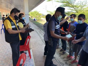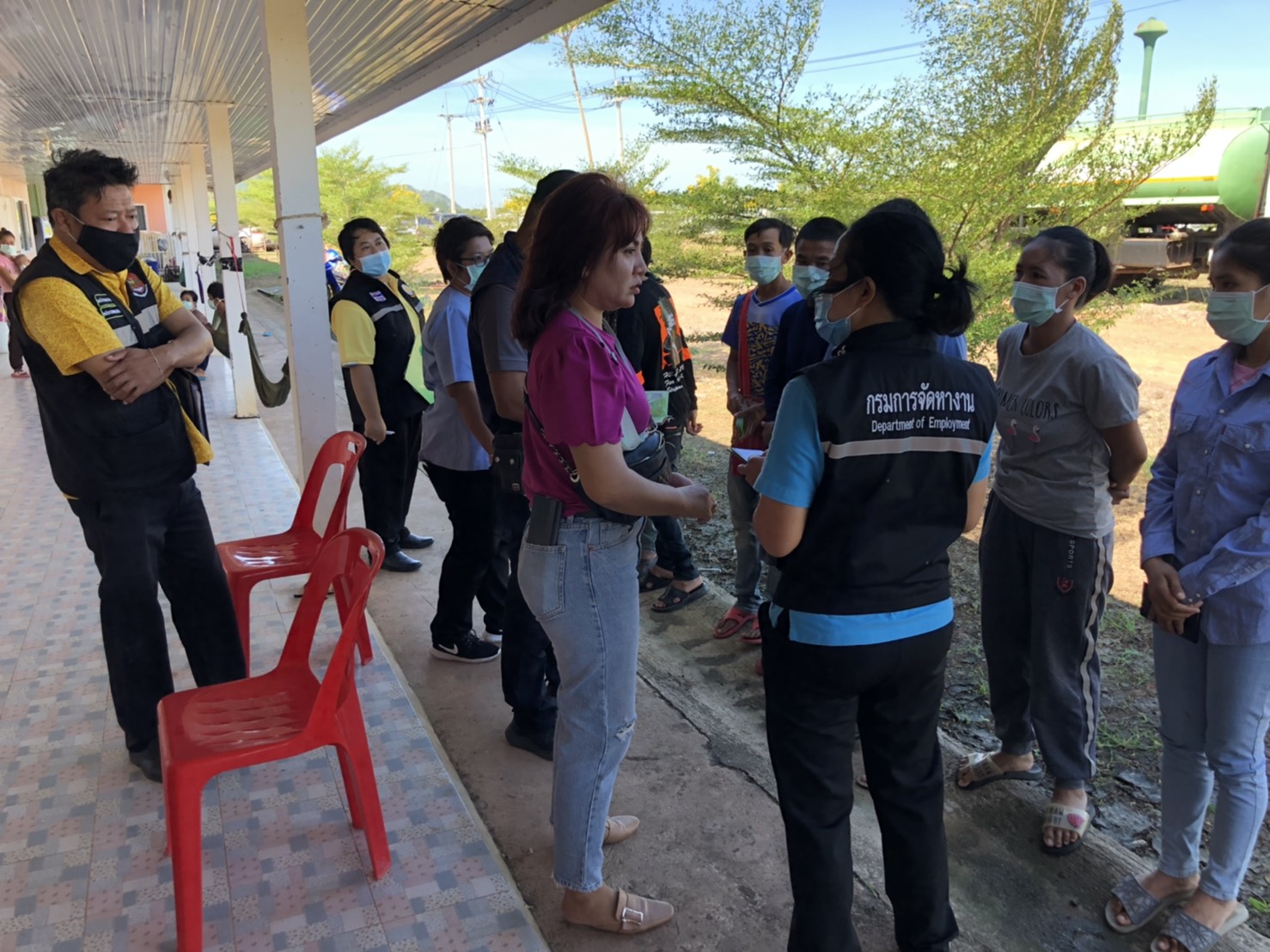 วันอังคารที่ 24 พฤศจิกายน 2563 : 09.00 น. นางสาวสุกัญญา องค์วิเศษไพบูลย์ แรงงานจังหวัดลพบุรี มอบหมายให้ นางสาวจิราภรณ์ อุปละ นักวิชาการแรงงานชำนาญการ เข้าร่วมบูรณาการการตรวจสอบนายจ้าง/สถานประกอบการที่จ้างแรงงานต่างด้าวสัญชาติเมียนมา ในพื้นที่อำเภอโคกสำโรง เพื่อให้ปฏิบัติให้ถูกต้องตามกฎหมายและเป็นการป้องกันการแพร่ระบาดของโรคติดเชื้อไวรัสโคโรนา 2019 (โควิด-19) ซึ่งเป็นการทำงานแบบบูรณาการของสำนักงานแรงงานจังหวัดลพบุรี สำนักงานจัดหางานจังหวัดลพบุรี ตรวจคนเข้าเมืองจังหวัดลพบุรี สำนักงานสวัสดิการและคุ้มครองแรงงานจังหวัดลพบุรี และสำนักงานสาธารณสุขจังหวัดลพบุรี ผลการตรวจสถานประกอบการ จำนวน 4 แห่ง พบแรงงานต่างด้าวสัญชาติเมียนมา 39 คน (ชาย 25 คน หญิง 14 คน) โดยผลการตรวจสอบคัดกรองโรคในเบื้องต้นยังไม่พบแรงงานงานต่างด้าวที่อยู่ในกลุ่มเสี่ยง ทั้งนี้ เจ้าหน้าที่ได้ขอความร่วมมือจากสถานประกอบการและแรงงานต่างด้าวในการช่วยกันเฝ้าระวังการแพร่ระบาดของโรคติดเชื้อไวรัสโคโรนา 2019 (โควิด-19) และรณรงค์ป้องกันและแก้ไขปัญหาการค้ามนุษย์ด้านแรงงานให้กับสถานประกอบการดังกล่าว