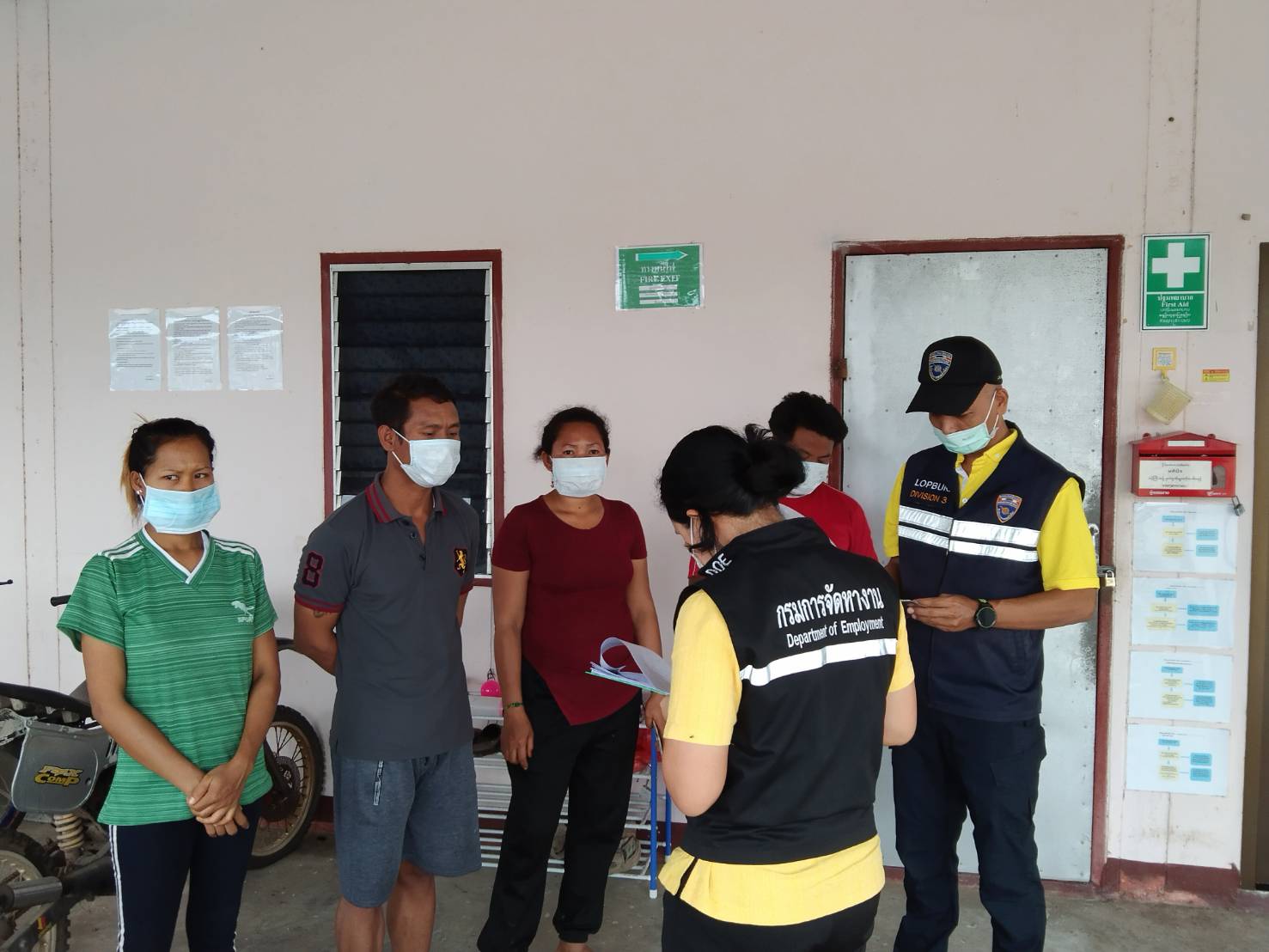 วันจันทร์ที่ 14 ธันวาคม 2563 เวลา 09.30 น. นางสาวสุกัญญา องค์วิเศษไพบูลย์ แรงงานจังหวัดลพบุรี มอบหมายให้ นายทศพร แท่นพิทักษ์ นักวิชาการแรงงาน เข้าร่วมบูรณาการการตรวจสอบนายจ้าง/สถานประกอบการที่จ้างแรงงานต่างด้าวสัญชาติเมียนมา ในพื้นที่อำเภอพัฒนานิคม เพื่อให้ปฏิบัติให้ถูกต้องตามกฎหมายและเป็นการป้องกันการแพร่ระบาดของโรคติดเชื้อไวรัสโคโรนา 2019 (โควิด-19) ซึ่งเป็นการทำงานแบบบูรณาการของสำนักงานแรงงานจังหวัดลพบุรี สำนักงานจัดหางานจังหวัดลพบุรี สำนักงานสาธารณสุขจังหวัดลพบุรี และตรวจคนเข้าเมืองจังหวัดลพบุรี ผลการตรวจสถานประกอบการ จำนวน 7 แห่ง พบแรงงานต่างด้าวสัญชาติเมียนมา 32 คน (ชาย 21 คน หญิง 11 คน) โดยผลการตรวจสอบคัดกรองโรคในเบื้องต้นยังไม่พบแรงงานต่างด้าวที่อยู่ในกลุ่มเสี่ยง ทั้งนี้ เจ้าหน้าที่ได้ขอความร่วมมือจากสถานประกอบการและแรงงานต่างด้าวในการช่วยกันเฝ้าระวังการแพร่ระบาดของโรคติดเชื้อไวรัสโคโรนา 2019 (โควิด-19) พร้อมกันนี้ได้ร่วมรณรงค์ป้องกันและแก้ไขปัญหาการค้ามนุษย์ด้านแรงงาน และรณรงค์ประชาสัมพันธ์โครงการสัตว์ปลอดโรคคนปลอดภัยจากโรคพิษสุนัขบ้าฯ ให้กับสถานประกอบการดังกล่าว