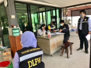 วันพุธที่ 23 ธันวาคม 2563 เวลา 09.00 น. นางสาวสุกัญญา องค์วิเศษไพบูลย์ แรงงานจังหวัดลพบุรี มอบหมายให้ นายทศพร แท่นพิทักษ์ นักวิชาการแรงงาน เข้าร่วมบูรณาการการตรวจสอบนายจ้าง/สถานประกอบการที่จ้างแรงงานต่างด้าวสัญชาติเมียนมา ในพื้นที่อำเภอพัฒนานิคม เพื่อให้ปฏิบัติให้ถูกต้องตามกฎหมายและเป็นการป้องกันการแพร่ระบาดของโรคติดเชื้อไวรัสโคโรนา 2019 (โควิด-19) ซึ่งเป็นการทำงานแบบบูรณาการของสำนักงานแรงงานจังหวัดลพบุรี สำนักงานจัดหางานจังหวัดลพบุรี สำนักงานสาธารณสุขจังหวัดลพบุรี และตรวจคนเข้าเมืองจังหวัดลพบุรี ผลการตรวจสถานประกอบการ จำนวน 8 แห่ง พบแรงงานต่างด้าวสัญชาติเมียนมา 20 คน (ชาย 10 คน หญิง 10 คน) โดยผลการตรวจสอบคัดกรองโรคในเบื้องต้นยังไม่พบแรงงานต่างด้าวที่อยู่ในกลุ่มเสี่ยง ทั้งนี้ เจ้าหน้าที่ได้ขอความร่วมมือจากสถานประกอบการและแรงงานต่างด้าวในการช่วยกันเฝ้าระวังการแพร่ระบาดของโรคติดเชื้อไวรัสโคโรนา 2019 (โควิด-19) พร้อมกันนี้ได้ร่วมรณรงค์ป้องกันและแก้ไขปัญหาการค้ามนุษย์ด้านแรงงาน และรณรงค์ประชาสัมพันธ์โครงการสัตว์ปลอดโรคคนปลอดภัยจากโรคพิษสุนัขบ้าฯ ให้กับสถานประกอบการดังกล่าว