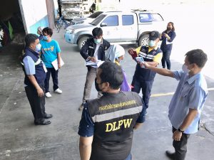 วันพฤหัสบดีที่ 24 ธันวาคม 2563 เวลา 09.00 น. นางสาวสุกัญญา องค์วิเศษไพบูลย์ แรงงานจังหวัดลพบุรี มอบหมายให้ นายสุรวิสิฐ ทาบุตร เจ้าหน้าที่สำนักงานแรงงานจังหวัดลพบุรี เข้าร่วมบูรณาการการตรวจสอบนายจ้าง/สถานประกอบการที่จ้างแรงงานต่างด้าวสัญชาติเมียนมา ในพื้นที่อำเภอบ้านหมี่ เพื่อให้ปฏิบัติให้ถูกต้องตามกฎหมายและเป็นการป้องกันการแพร่ระบาดของโรคติดเชื้อไวรัสโคโรนา 2019 (โควิด-19) ซึ่งเป็นการทำงานแบบบูรณาการของสำนักงานแรงงานจังหวัดลพบุรี สำนักงานจัดหางานจังหวัดลพบุรี สำนักงานสาธารณสุขจังหวัดลพบุรี และตรวจคนเข้าเมืองจังหวัดลพบุรี ผลการตรวจสถานประกอบการ จำนวน 6 แห่ง พบแรงงานต่างด้าวสัญชาติเมียนมา 32 คน (ชาย 19 คน หญิง 13 คน) โดยผลการตรวจสอบคัดกรองโรคในเบื้องต้นยังไม่พบแรงงานต่างด้าวที่อยู่ในกลุ่มเสี่ยง ทั้งนี้ เจ้าหน้าที่ได้ขอความร่วมมือจากสถานประกอบการและแรงงานต่างด้าวในการช่วยกันเฝ้าระวังการแพร่ระบาดของโรคติดเชื้อไวรัสโคโรนา 2019 (โควิด-19) พร้อมกันนี้ได้ร่วมรณรงค์ป้องกันและแก้ไขปัญหาการค้ามนุษย์ด้านแรงงาน และรณรงค์ประชาสัมพันธ์โครงการสัตว์ปลอดโรคคนปลอดภัยจากโรคพิษสุนัขบ้าฯ ให้กับสถานประกอบการดังกล่าว