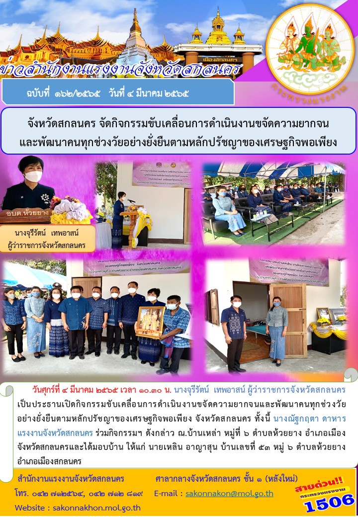 จังหวัดสกลนคร จัดกิจกรรมขับเคลื่อนการดำเนินงานขจัดความยากจนและพัฒนาคนทุกช่วงวัยอย่างยั่งยืนตามหลักปรัชญาของเศรษฐกิจพอเพียง