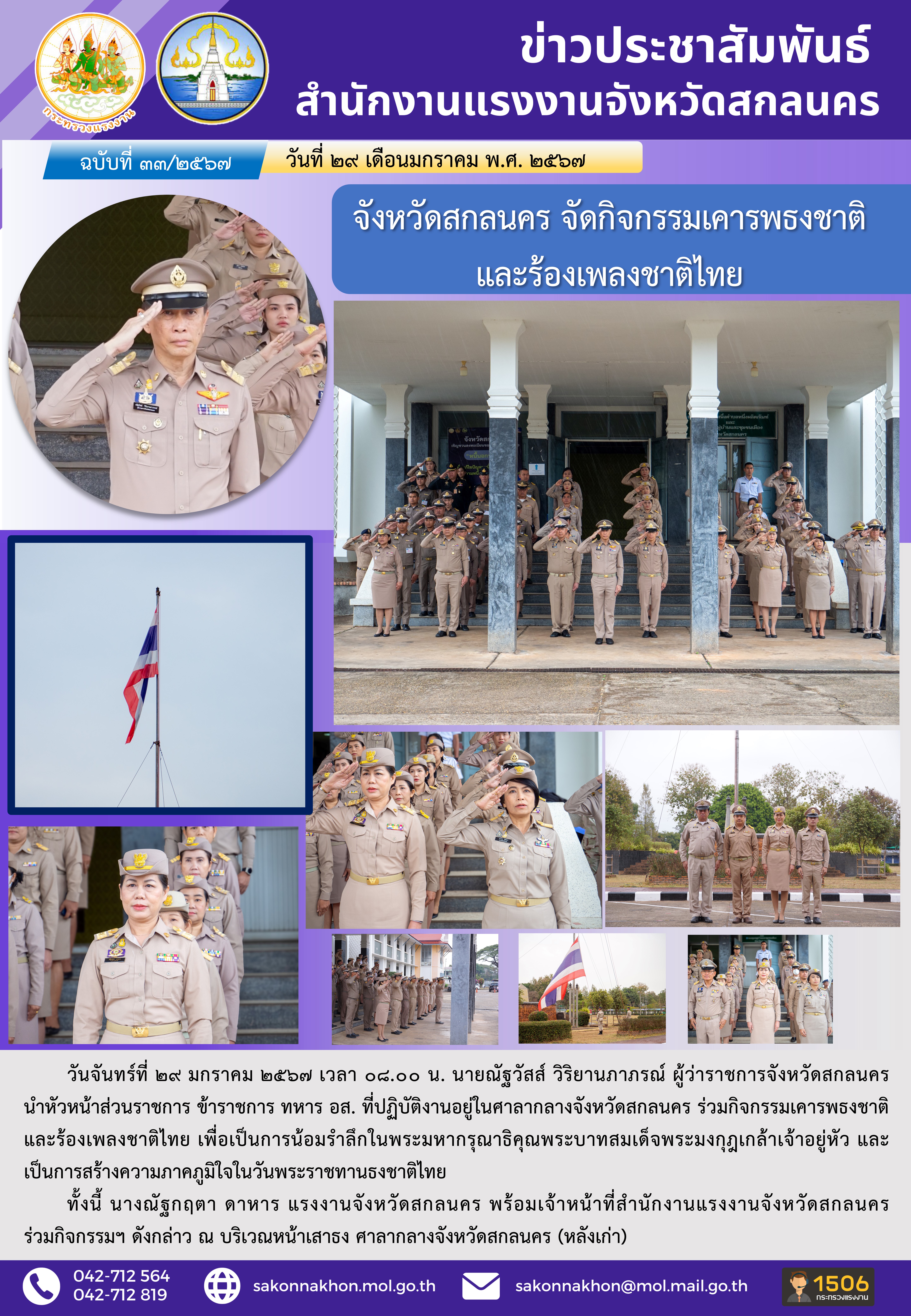 สรจ.สกลนคร จัดกิจกรรมเคารพธงชาติและร้องเพลงชาติไทย