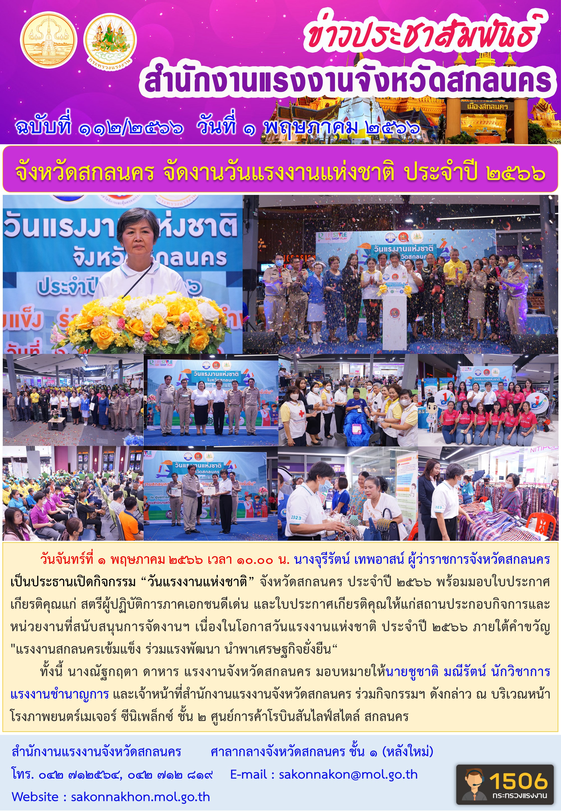 สรจ.สกลนคร จัดงานวันแรงงานแห่งชาติ ประจำปี 2566