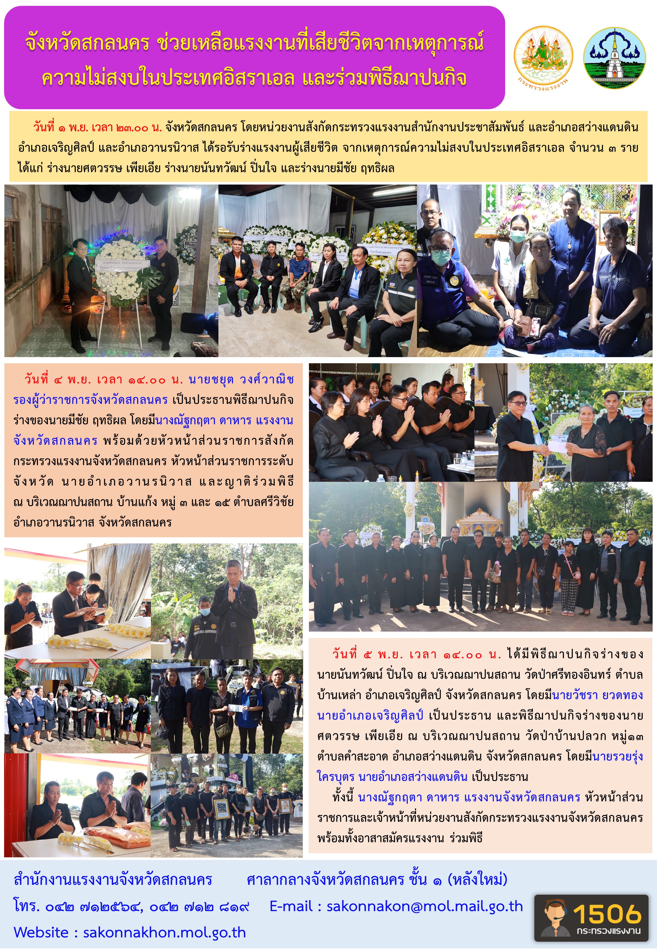 สรจ.สกลนคร ช่วยเหลือแรงงานที่เสียชีวิตจากเหตุการณ์ความไม่สงบในประเทศอิสราเอล และร่วมพิธีฌาปนกิจ