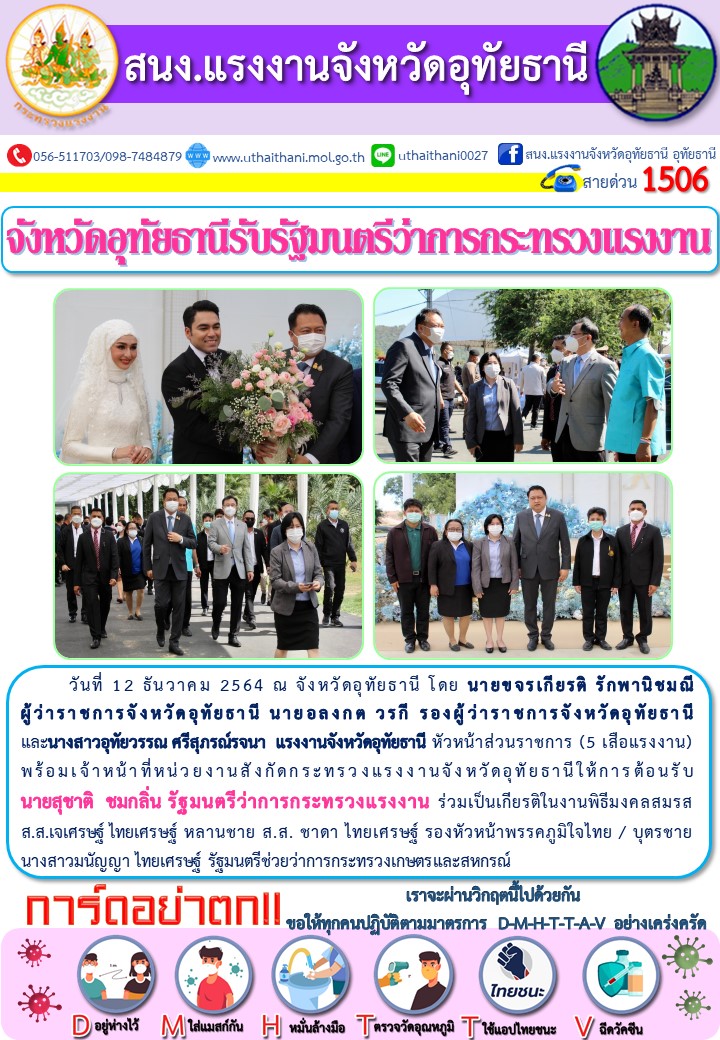 จังหวัดอุทัยธานี รับรัฐมนตรีว่าการกระทรวงแรงงาน