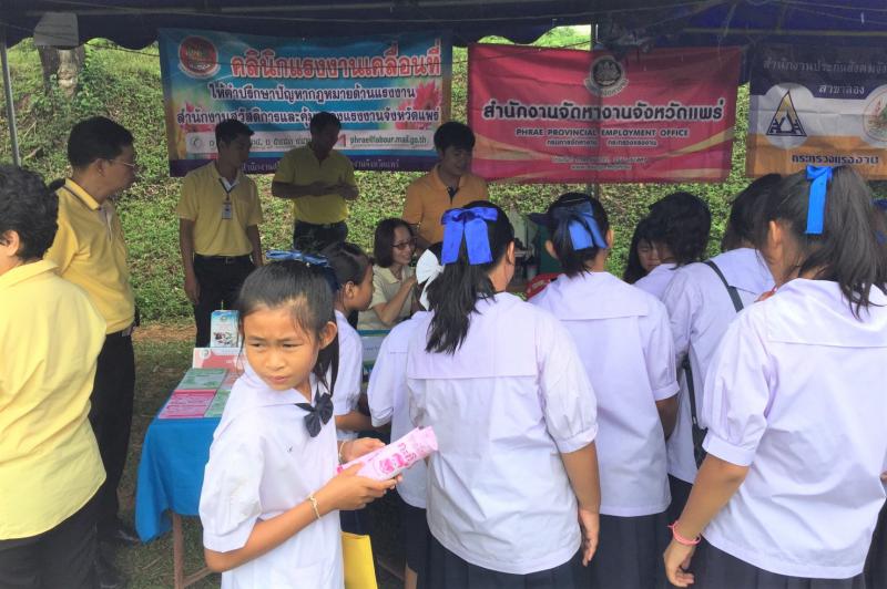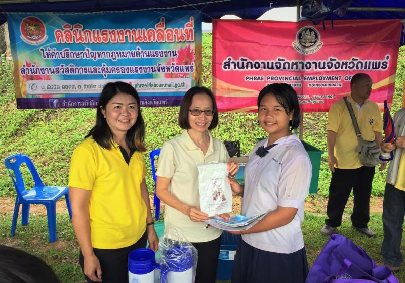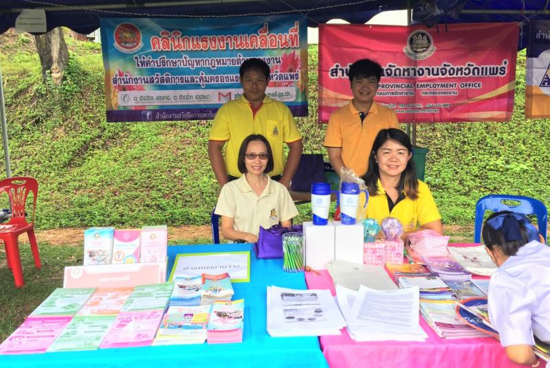 วันนี้ (18 กรกฎาคม 2561) นางสาวปราณี ชลารักษ์ แรงงานจังหวัดแพร่ มอบหมายให้นางสาวกัลยา จงถาวรกุล เจ้าพนักงานการเงินบัญชีชำนาญงาน พร้อมด้วยเจ้าหน้าสำนักงานแรงงานจังหวัดแพร่ ร่วมกับหัวหน้าส่วนราชการสังกัดกระทรวงแรงงาน เข้าร่วมโครงการจังหวัดเคลื่อนที่เสริมสร้างพลังประชารัฐจังหวัดแพร่ ณ โรงเรียนบ้านหาดรั่ว หมู่ 3 ตำบลวังชิ้น อำเภอวังชิ้น จังหวัดแพร่ โดยมี นายพงศ์รัตน์ ภิรมย์รัตน์ ผู้ว่าราชการจังหวัดแพร่เป็นประธานในโครงการดังกล่าว