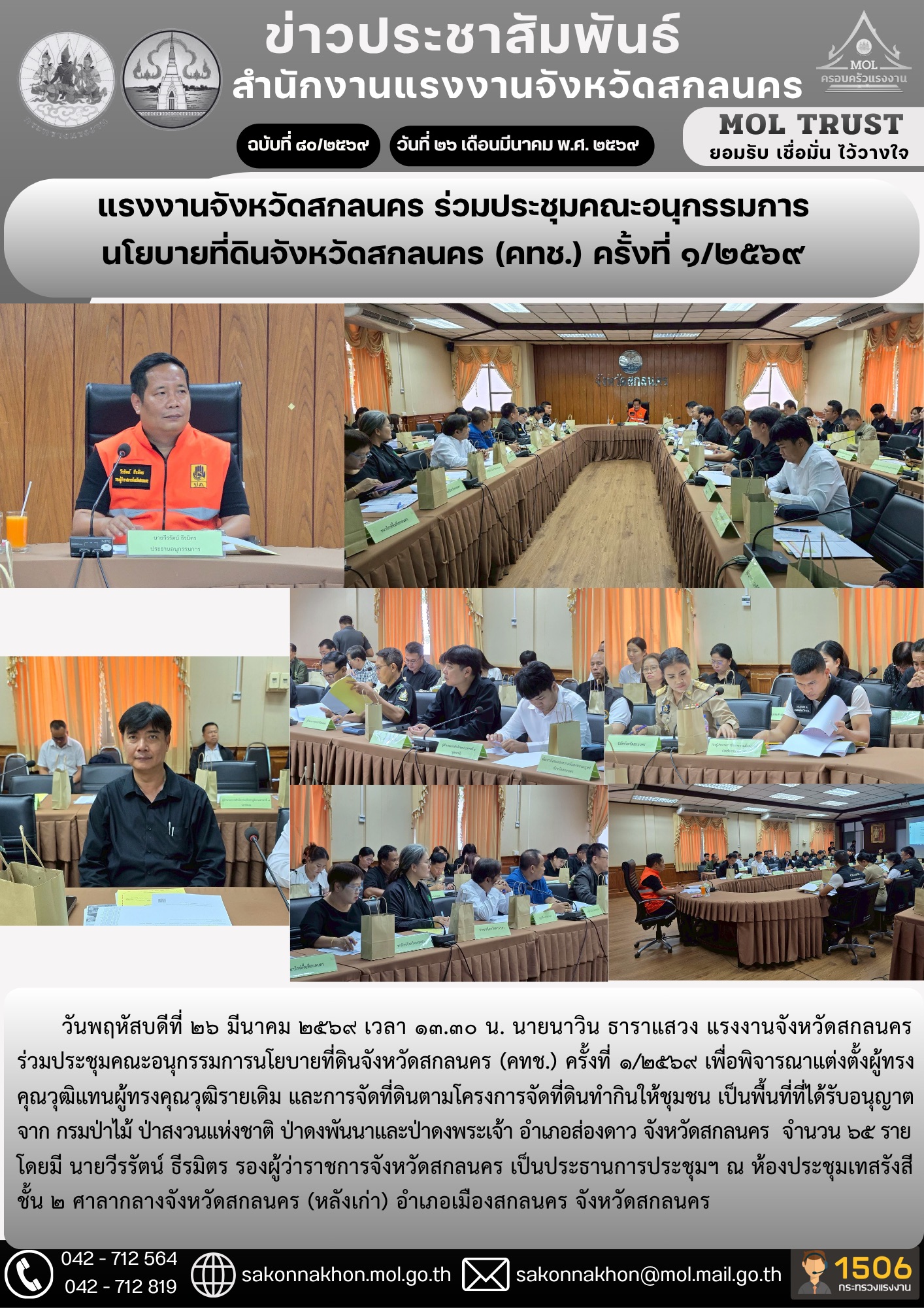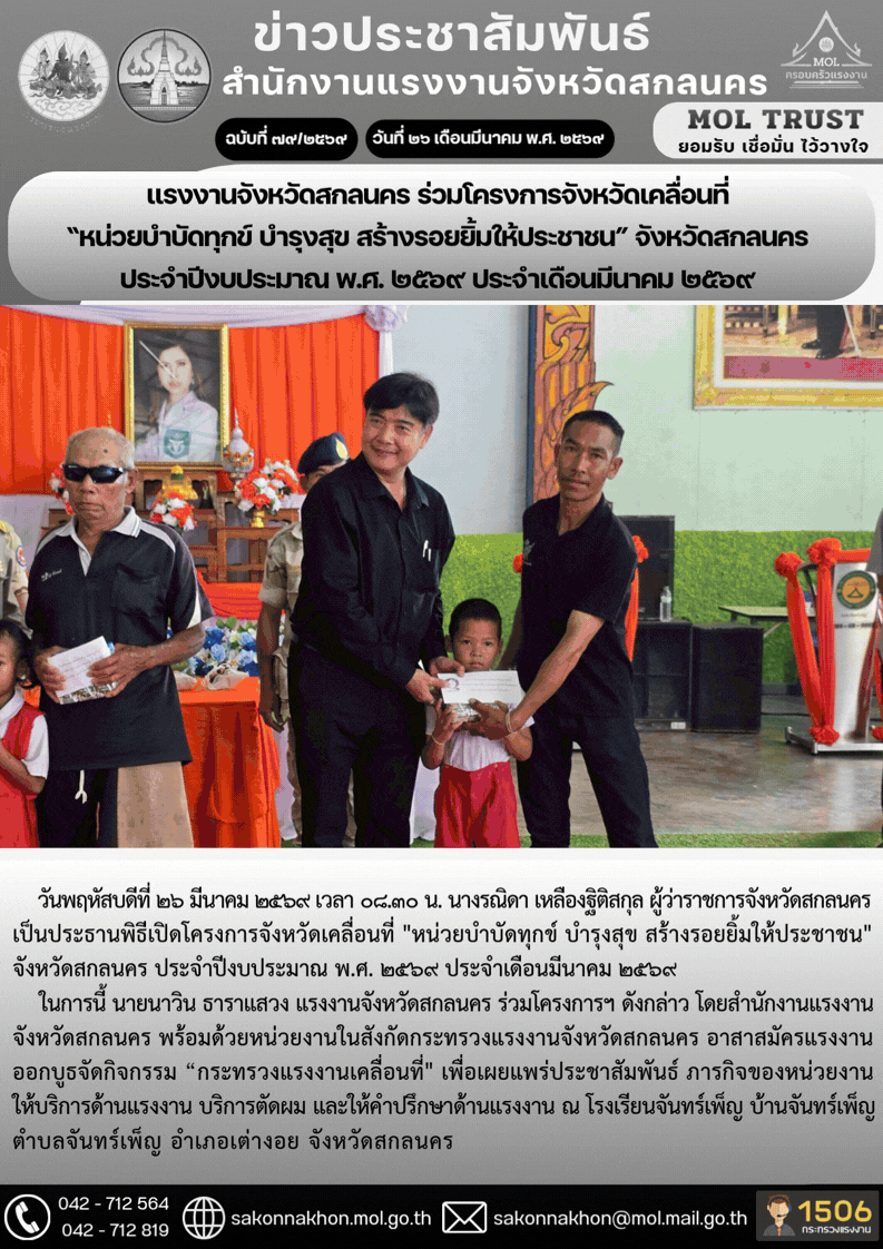 วันพฤหัสบดีที่ 26 มีนาคม พ.ศ. 2569 เวลา 09.30 น. สำนักงานแรงงานจังหวัดเพชรบุรีบูรณาการความร่วมมือหน่วยงานในสังกัดกระทรวงแรงงานจังหวัดเพชรบุรี จัดประชุม ‘เสริมสร้างศักยภาพอาสาสมัครแรงงานแกนนำระดับตำบลจังหวัดเพชรบุรี’ โดยมี ผู้แทนหน่วยงานในสังกัดกระทรวงแรงงาน ร่วมเป็นวิทยากรสร้างความรู้ ความเข้าใจเกี่ยวกับภารกิจของกระทรวงแรงงานให้อาสาสมัครแรงงานนำไปปฏิบัติงานในระดับพื้นที่ รวมทั้งเพื่อให้อาสาสมัครแรงงานได้นำเสนอปัญหา อุปสรรค ข้อเสนอแนะ เพื่อพัฒนาการทำงานร่วมกัน เพื่อสร้างความสัมพันธ์ที่ดีระหว่างอาสาสมัครแรงงานและเจ้าหน้าที่ของหน่วยงานในสังกัดกระทรวงแรงงานในระดับพื้นที่ และชี้แจงภารกิจของหน่วยงานสังกัดกระทรวงแรงงานที่จะมอบหมายให้อาสาสมัครแรงงานนำไปปฏิบัติในระดับพื้นที่ได้อย่างมีประสิทธิภาพ ณ ห้องประชุม ชั้น 3 สำนักงานแรงงานจังหวัดเพชรบุรี อำเภอเมืองเพชรบุรี จังหวัดเพชรบุรี