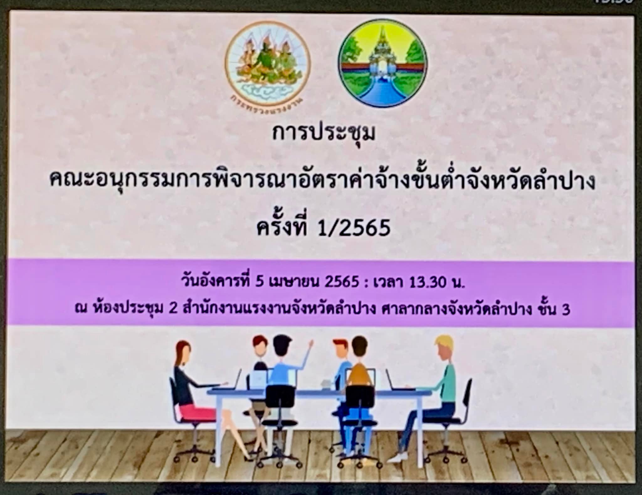 วันอังคาร 5 เม.ย.2565 : 13.30 น. สำนักงานแรงงานจังหวัดลำปาง จัดการประชุมคณะอนุกรรมการพิจารณาอัตราค่าจ้างขั้นต่ำจังหวัดลำปาง ครั้งที่ 1/2565 ณ ห้องประชุม 2 สำนักงานแรงงานจังหวัดลำปาง ชั้น 3 ศาลากลางจังหวัดลำปาง ทั้งนี้ที่ประชุมมีมติให้นายอนุวัตร ภูวเศรษฐ ผู้แทนฝ่ายนายจ้าง ทำหน้าที่ประธานการประชุม ฯ โดย น.ส.ปาริชาติ สวนใจ แรงงานจังหวัดลำปาง ทำหน้าที่เป็นอนุกรรมการฯและเลขานุการ โดยมีผู้แทนฝ่ายรัฐบาล ผู้แทนฝ่ายนายจ้าง และผู้แทนฝ่ายลูกจ้าง เข้าร่วมประชุมฯ อย่างพร้อมเพรียงกัน