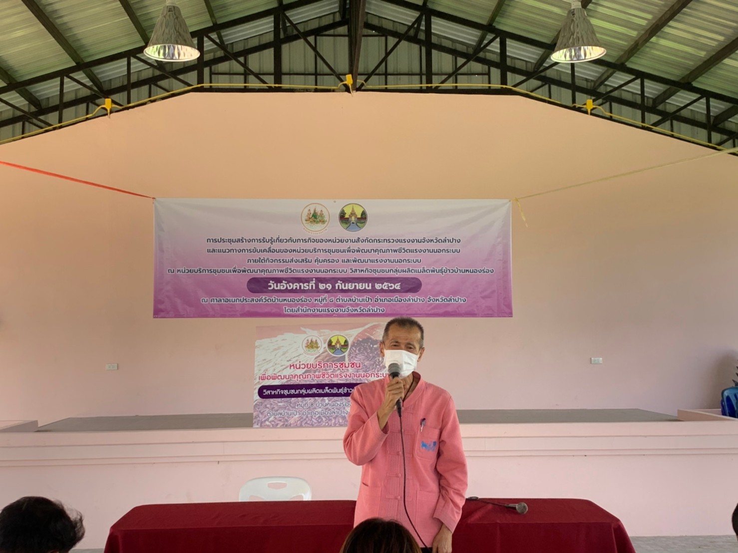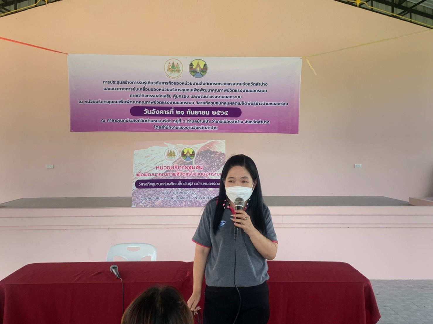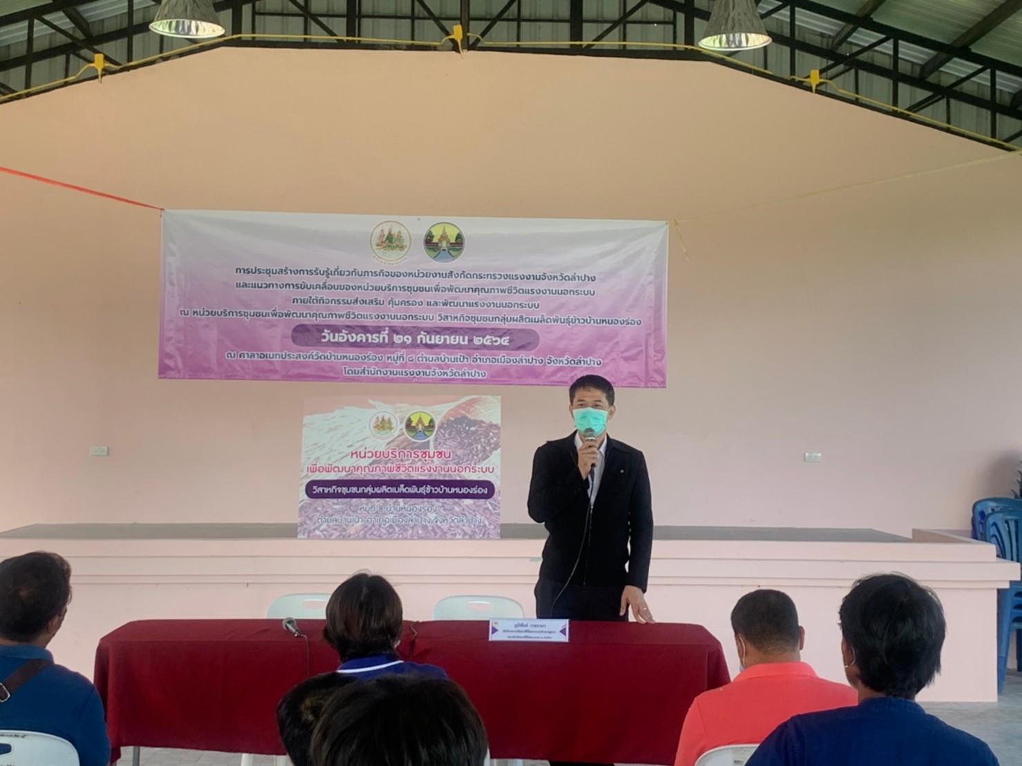 สรจ.ลำปาง จัดประชุมสร้างการรับรู้เกี่ยวกับภารกิจของหน่วยงานสังกัดกระทรวงแรงงานจังหวัดลำปาง และแนวทางการขับเคลื่อนแรงงานของหน่วยบริการชุมชนเพื่อพัฒนาคุณภาพชีวิตแรงงานนอกระบบ วิสาหกิจชุมชนกลุ่มผลิตเมล็ดพันธุ์ข้าวบ้านหนองร่อง