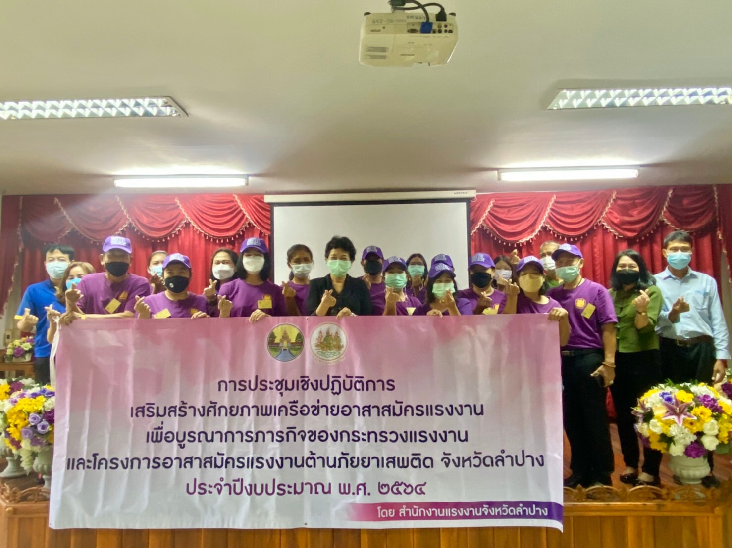 จัดประชุมเชิงปฏิบัติการเสริมสร้างศักยภาพเครือข่ายอาสาสมัครแรงงาน และโครงการอาสาสมัครแรงงานต้านภัยยาเสพติด รุ่นที่ 9 (อำเภอแม่ทะ)