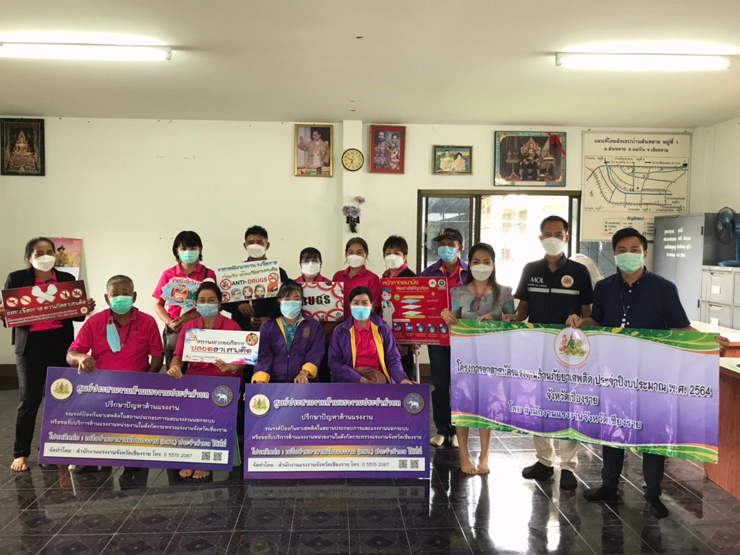 จัดอบรมโครงการอาสาสมัครแรงงานต้านภัยยาเสพติด ประจำปีงบประมาณ พ.ศ 2564 สัญจร อำเภอแม่จัน และอำเภอแม่สาย