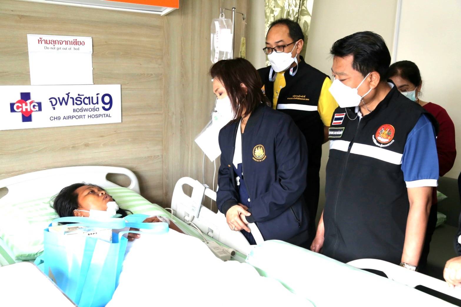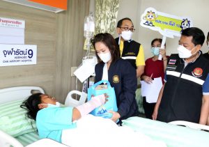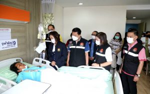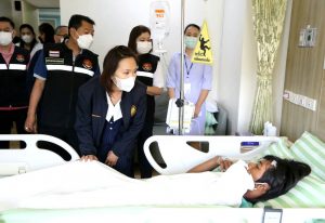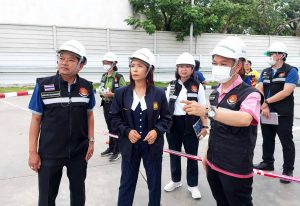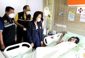 The Ministry of Labour’s Chief Inspector-General, Mrs. Sopa Kieatnircha, said that she visited the area with agencies under the Ministry of Labour, namely the Department of Labour Protection and Welfare, and the Social Security Office, to investigate the facts and provide assistance to the injured and deceased workers. Eight injured people were sent to Ladkrabang Hospital and five to Chularat Hospital. The two deceased were subcontractors. The Bangkok Labour Protection and Welfare Office, Area 10, and the Occupational Safety Center, Area 12, will invite the employers and related parties to meet on July 18, 2023, to verify whether the employers have complied with the Occupational Safety, Health, and Working Environment Act. B.E. 2554 and the ministerial regulations prescribing standards for management and action on occupational safety, health, and working environment about machines, cranes, boilers, B.E. 2564. After that, she visited the injured employees at Chularat 9 Hospital to build morale and encouragement.
