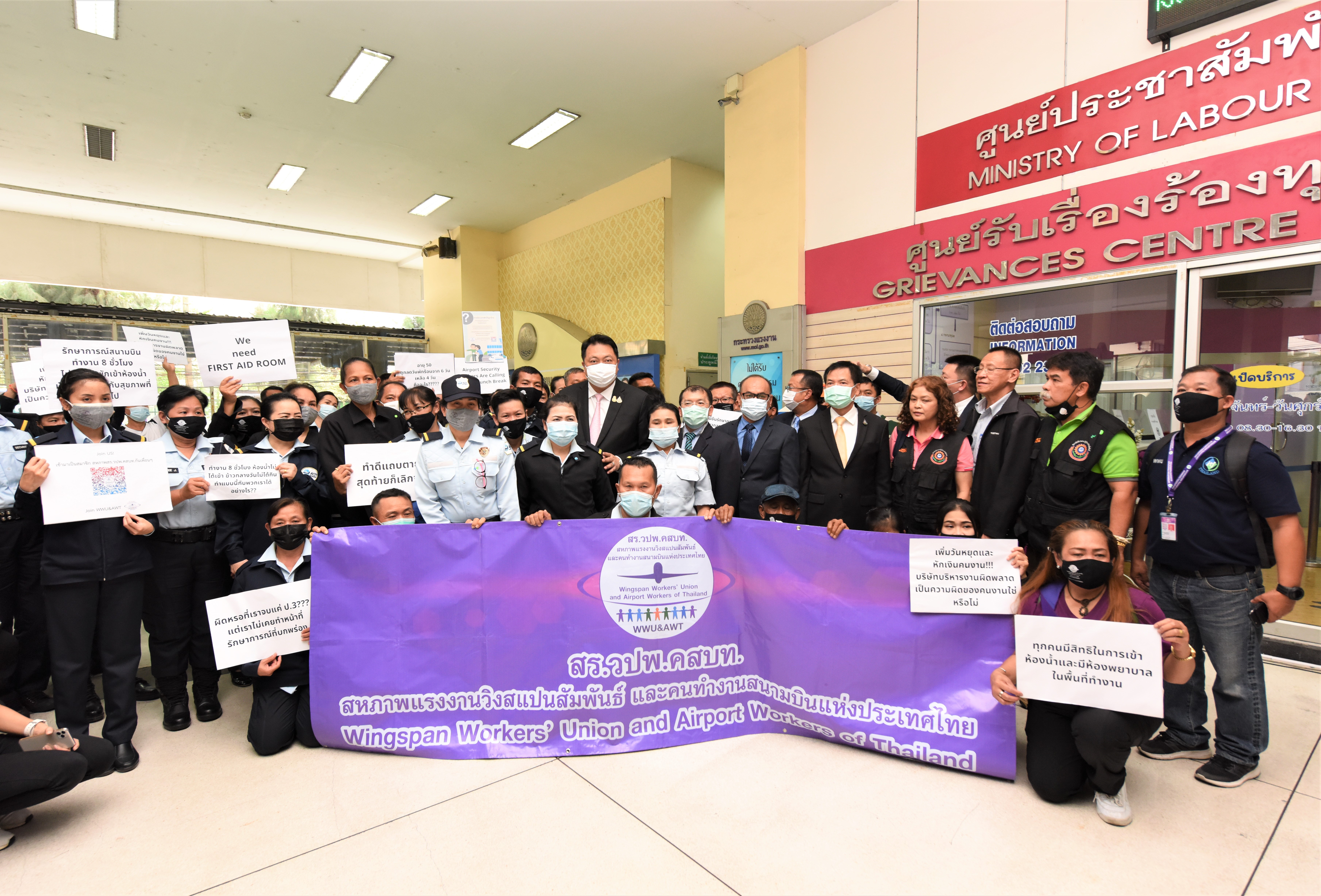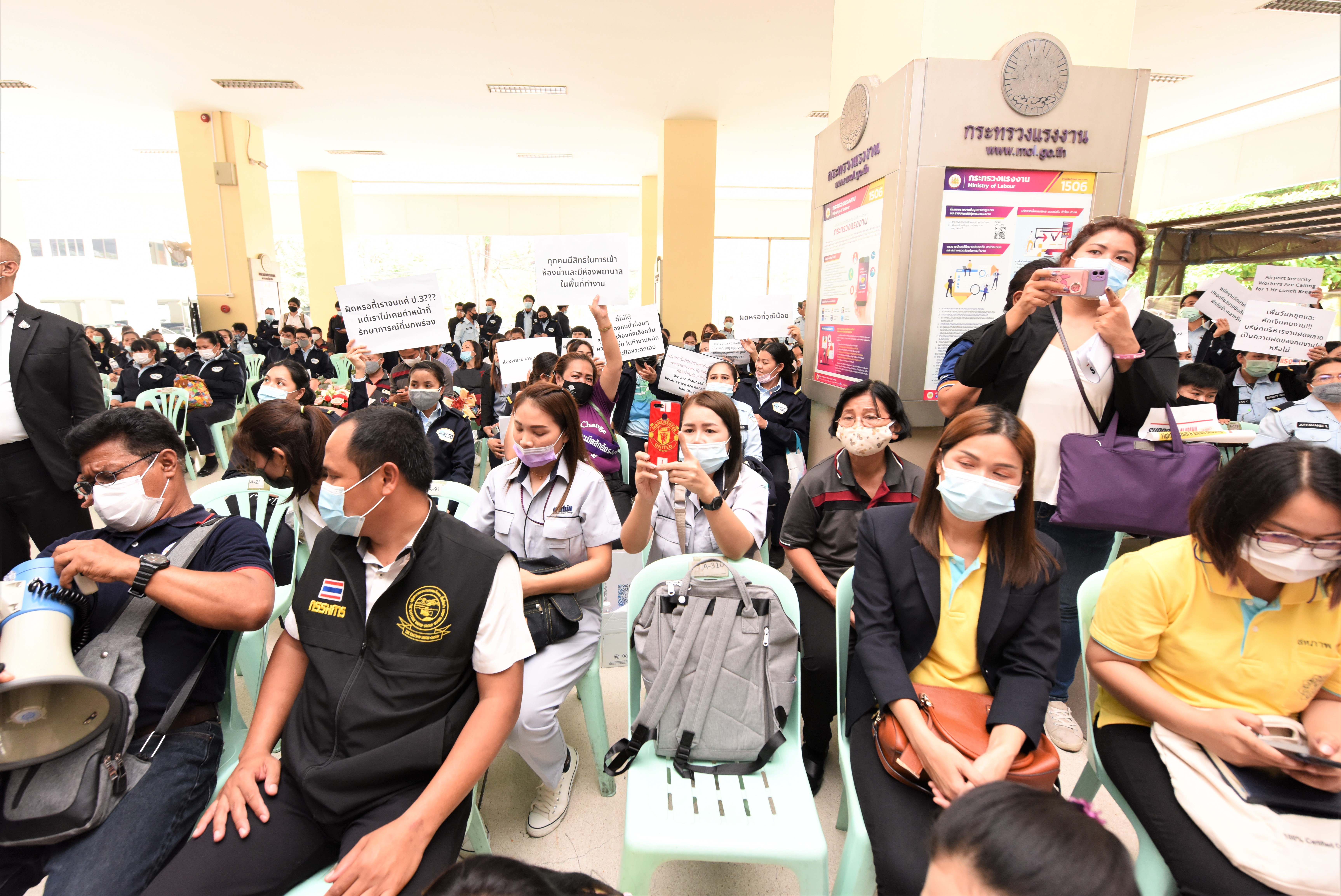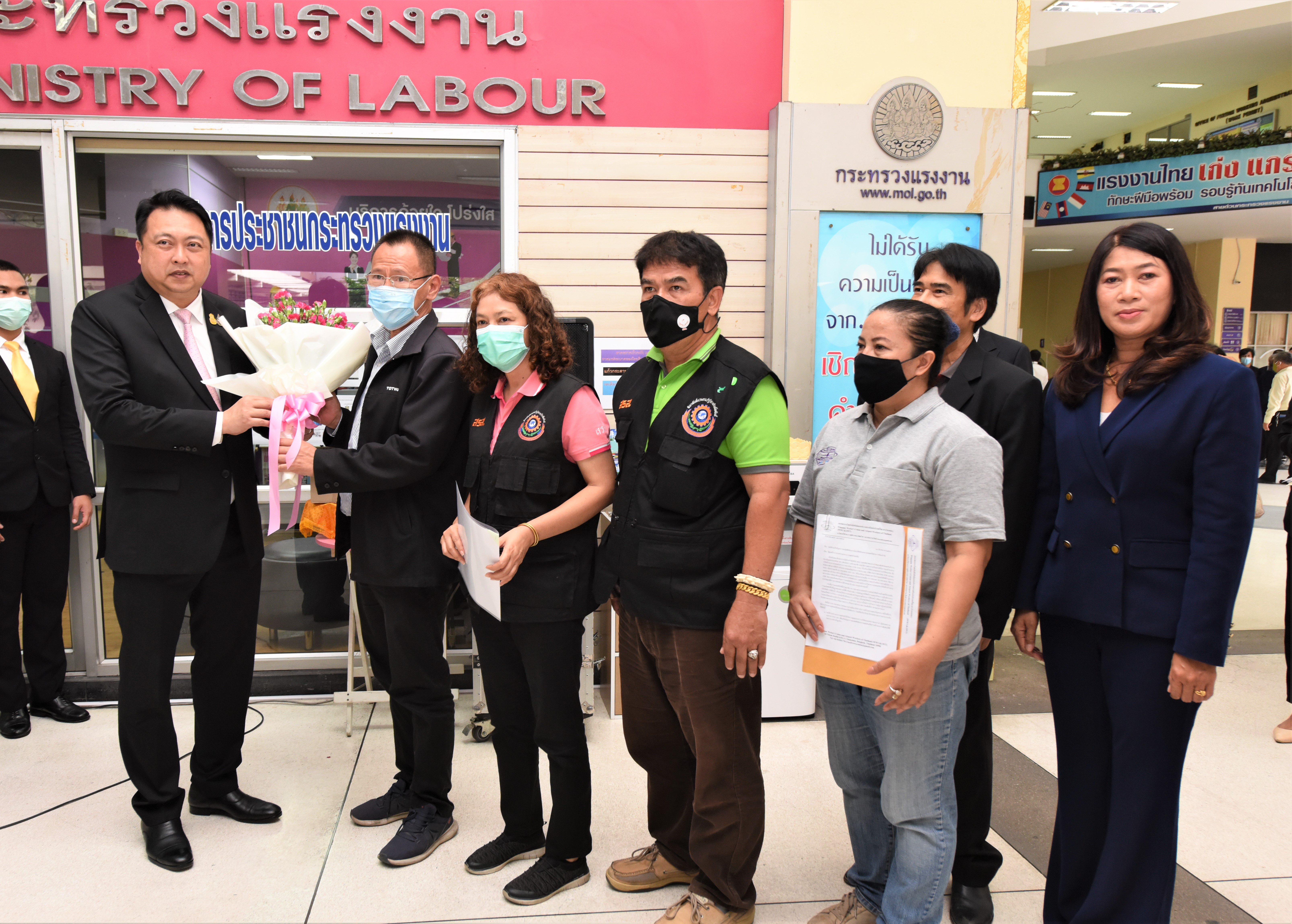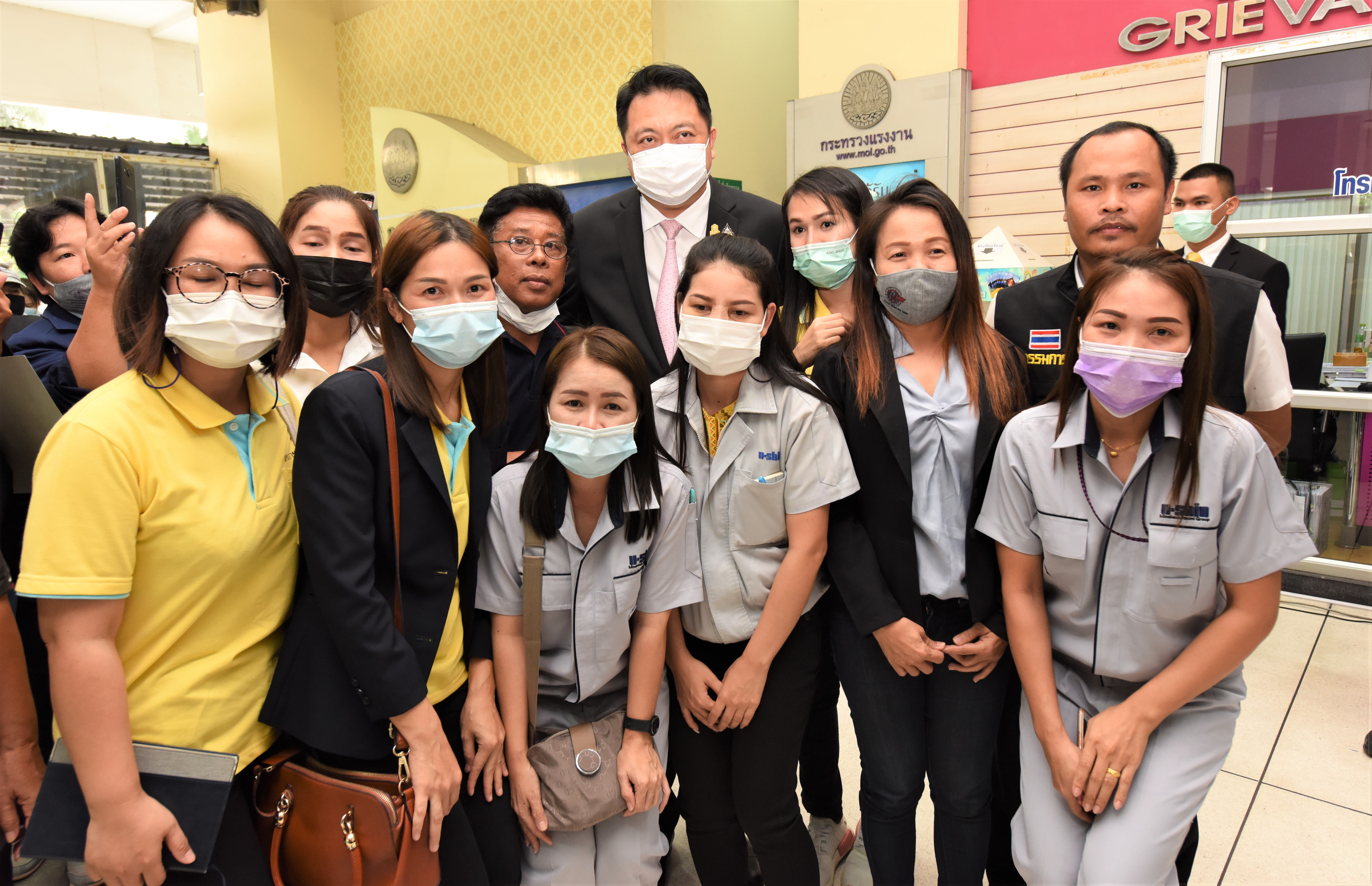 โอกาสเดียวกันนี้ มีนางอภันตรี เจริญศักดิ์ รองประธานคณะกรรมการสมานฉันท์แรงงานไทย (คสรท.) และคณะ ได้นำลูกจ้าง จำนวน 250 คน ได้เข้าขอบคุณรัฐมนตรีว่าการกระทรวงแรงงานที่ได้ผลักดันและช่วยเหลือเยียวยาผู้ประกันตนมาตรา 33 จำนวน 9.27 ล้านคน ให้ได้รับการช่วยเหลือรายละ 4,000 บาทเป็นผลสำเร็จ และเข้ายื่นหนังสือข้อเรียกร้องของลูกจ้างได้รับผลกระทบจากปัญหาข้อพิพาทด้านแรงงาน ต่อรัฐมนตรีว่าการกระทรวงแรงงาน เพื่อนำเสนอปัญหาและหารือแนวทางการแก้ไขปัญหา โดยมีประเด็นปัญหาดังนี้ 1) สหภาพแรงงาน (สร.) ซัมมิทแหลมฉบัง โอโต บอดี้ กรณีนายจ้างสร้างหลักฐานการกลับเข้ามาทำงาน โดยจ่ายค่าจ้างให้พนักงานจำนวน 7 วัน และเลิกจ้างพร้อมนำเงินส่งสำนักงานประกันสังคมเป็นเหตุให้ลูกจ้างเสียสิทธิกรณีว่างงานในงวดสุดท้าย 2) สหภาพแรงงานผลิตภัณฑ์ยานยนต์ไทย (บริษัท โตโยต้า โกเซรับเบอร์ ประเทศไทย จำกัด) บริษัทฯ กล่าวหา นายสุนทร เพชรอ้อน ว่ายุยงปลุกปั่นพนักงานและให้นายสุนทรฯ กับพวก 14 คน อยู่นอกบริษัทฯ อ้างปรับปรุงบริษัทฯ และมีคำสั่งให้หยุดปฏิบัติหน้าที่เรื่อยมา สร.ได้ยื่นคำร้องขอให้ ครส. พิจารณาวินิจฉัยและออกคำสั่งว่าการกระทำของบริษัทฯ เป็นการฝ่าฝืน พรบ.แรงงานสัมพันธ์ 2518 และให้บริษัทฯ ยกเลิกคำสั่งให้พนักงาน 14 คน กลับเข้ามาทำงานในตำแหน่งเดิมรวมถึงจ่ายเงินพิเศษให้กับพนักงาน 14 คน แต่พนักงาน 14 คน ไม่ได้รับเงินพิเศษแต่อย่างใด 3) สหภาพแรงงานผลิตภัณฑ์ยานยนต์ไทย (ลูกจ้างของบริษัทพงศ์พาราโคนันรับเบอร์ จำกัด) นายจ้างยื่นคำร้องต่อศาลแรงงานขออนุญาตเลิกจ้างนายสมคิด ของนา กับพวก 8 คน คดีอยู่ระหว่างการพิจารณาถึงวันที่ 30 ม.ค.64 ซึ่งมิชอบด้วยกฎหมายเนื่องจากศาลยังไม่อนุญาตให้บริษัทฯ เลิกจ้างคดีอยู่ในระหว่างกระบวนการพิจารณาของศาลแรงงาน 4) สหภาพแรงงานยาชิโยด้า แห่งประเทศไทย กรณีบริษัทฯ ไม่ปฏิบัติตามกฎหมาย เลิกจ้างกรรมการ สร.โดยไม่มีข้อหาเนื่องจากนายจ้างไม่ต้องการให้ลูกจ้างไปยื่นคำร้องที่ สสค.ปทุมธานี และอยู่ในระหว่างเรียกนายจ้างไปชี้แจงข้อเท็จจริง 5) สหภาพแรงงานบริษัท สยามยาชิโยะ จำกัด บริษัทฯ ไม่ปฏิบัติตาม พ.ร.บ.คุ้มครองแรงงงาน พ.ศ. 2541 โดยใช้อำนาจโดยไม่ชอบในการกลั่นแกล้งพนักงานไม่ให้สามารถทำงานต่อไปได้ จนไม่ได้รับค่าชดเชยตามกฎหมาย และ 6) สหภาพแรงงานวิงสแปนสัมพันธ์ฯ ประเด็นปัญหาบริษัท รักษาความปลอดภัยท่าอากาศยานไทย จำกัด อาทิ เรื่องการโอนย้ายพนักงานที่ไม่เป็นธรรม การประกาศใช้นโยบาย Work From Home กับพนักงานตรวจค้นรายเดือน (บังคับให้หยุดงาน) และหักเงินเดือนพนักงาน 