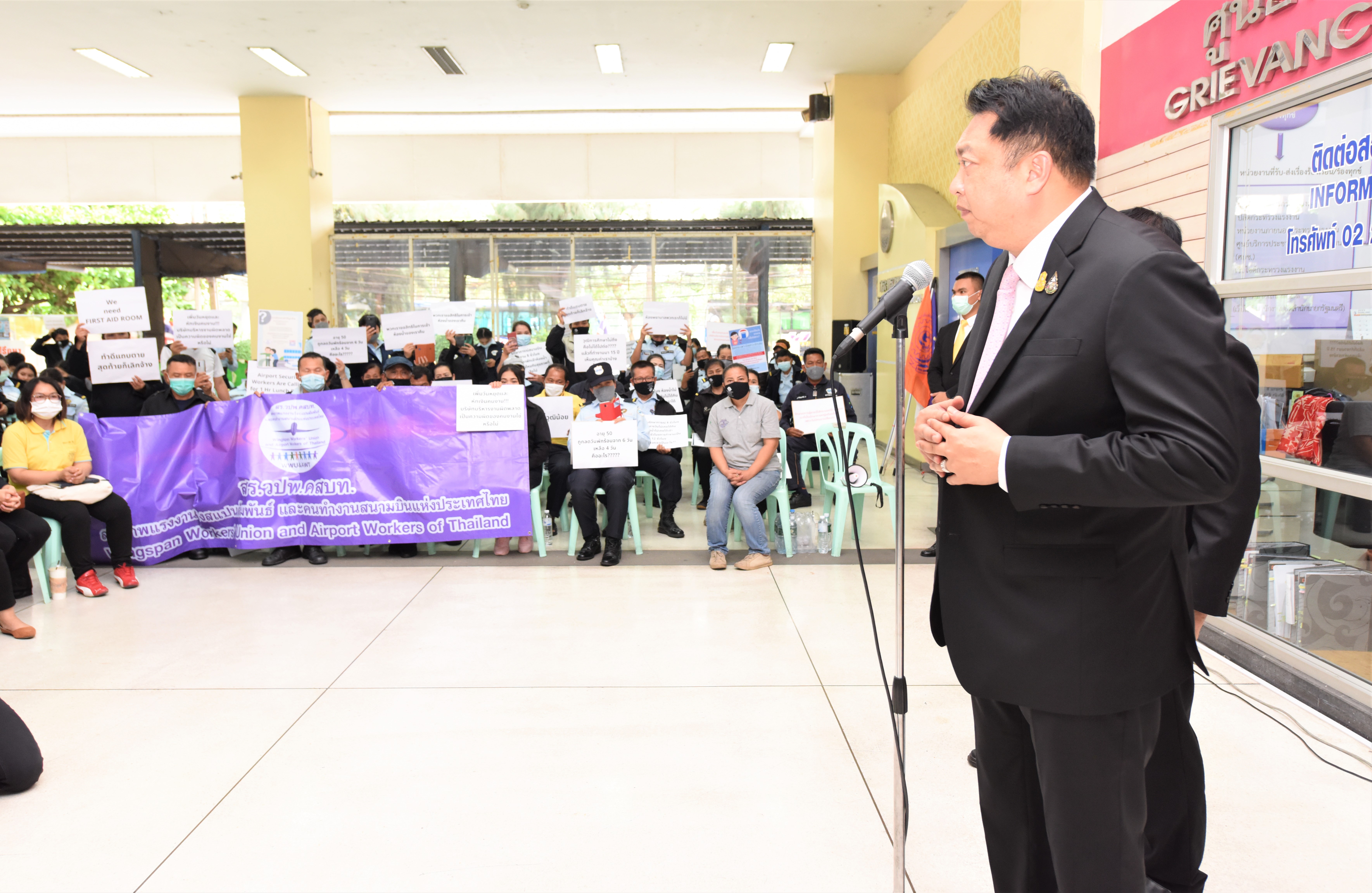 เมื่อวันที่ 10 มีนาคม 2564 เวลา 11.30 น.ที่บริเวณชั้นล่าง อาคารกระทรวงแรงงาน นายสุชาติ ชมกลิ่น รัฐมนตรีว่าการกระทรวงแรงงาน ได้ลงมาพบปะพูดคุยเพื่อให้กำลังใจกับลูกจ้างที่ได้รับผลกระทบจากปัญหาด้านแรงงานขององค์กรแรงงาน จำนวน 7 องค์กร เพื่อดำเนินการหาแนวทางการช่วยเหลือตามขั้นตอนของกฎหมายคุ้มครองแรงงาน โดย รมว.แรงงาน กล่าวว่า รัฐบาลภายใต้การนำของ พล.อ.ประยุทธ์ จันทร์โอชา นายกรัฐมนตรีและรัฐมนตรีว่าการกระทรวงกลาโหม และกระทรวงแรงงานภายใต้การกำกับดูแลของ พล.อ.ประวิตร วงษ์สุวรรณ รองนายกรัฐมนตรี ได้มีความห่วงใยพี่น้องผู้ใช้แรงงานทุกคนทุกกลุ่มเป็นอย่างยิ่ง ให้ดูแลดุจคนในครอบครัว จึงได้สั่งการให้กระทรวงแรงงานทำงานเชิงรุก ติดตามให้ความช่วยเหลือ และให้การสนับสนุนผู้ใช้แรงงานในทุกมิติ ซึ่งในวันนี้ผมได้ลงมาติดตามปัญหาของพี่น้องผู้ใช้แรงงานด้วยตนเอง ซึ่งกรณีปัญหาด้านแรงงานของแต่ละสหภาพแรงงานนั้น ผมได้สั่งการให้กรมสวัสดิการและคุ้มครองแรงงาน เข้าไปเร่งรัด ติดตาม และรายงานผลกลับไปโดยเร็วที่สุด