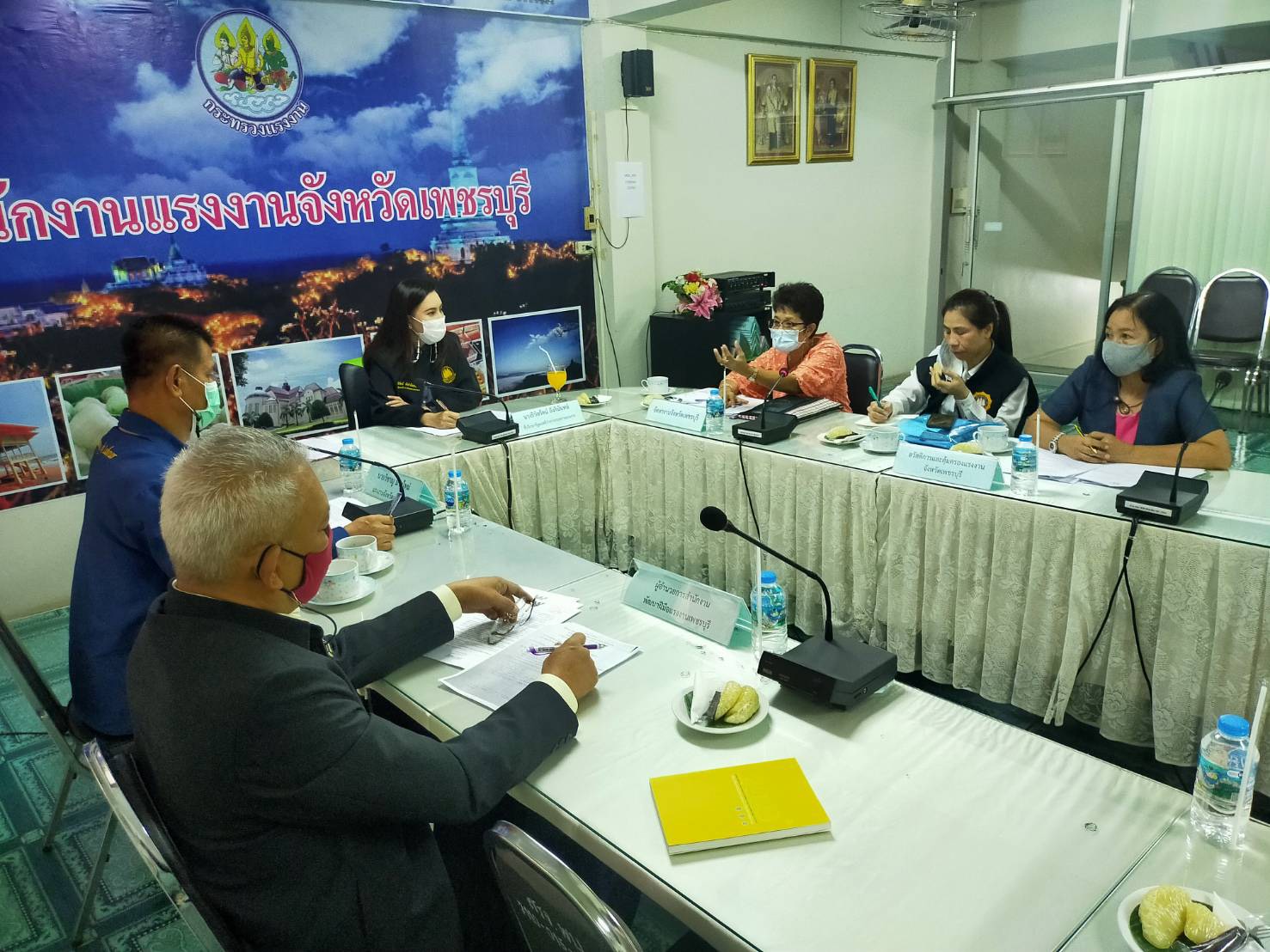นายสุชาติ ชมกลิ่น รัฐมนตรีว่าการกระทรวงแรงงาน มอบหมาย ที่ปรึกษารัฐมนตรีว่าการกระทรวงแรงงาน ประชุมหัวหน้าส่วนในสังกัดจังหวัดเพชรบุรี วางแผนการตรวจแนะนำสถานประกอบกิจการในที่มีการจ้างแรงงานต่างด้าว ป้องกันและควบคุมตามมาตรการโควิด -19