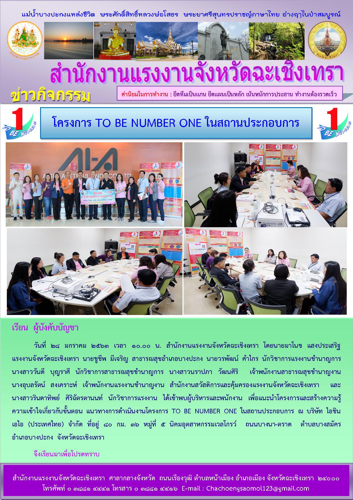 ฉะเชิงเทรา แนะนำโครงการและสร้างความรู้ความเข้าใจเกี่ยวกับขั้นตอน แนวทางการดำเนินงานโครงการ TO BE NUMBER ONE ในสถานประกอบการ