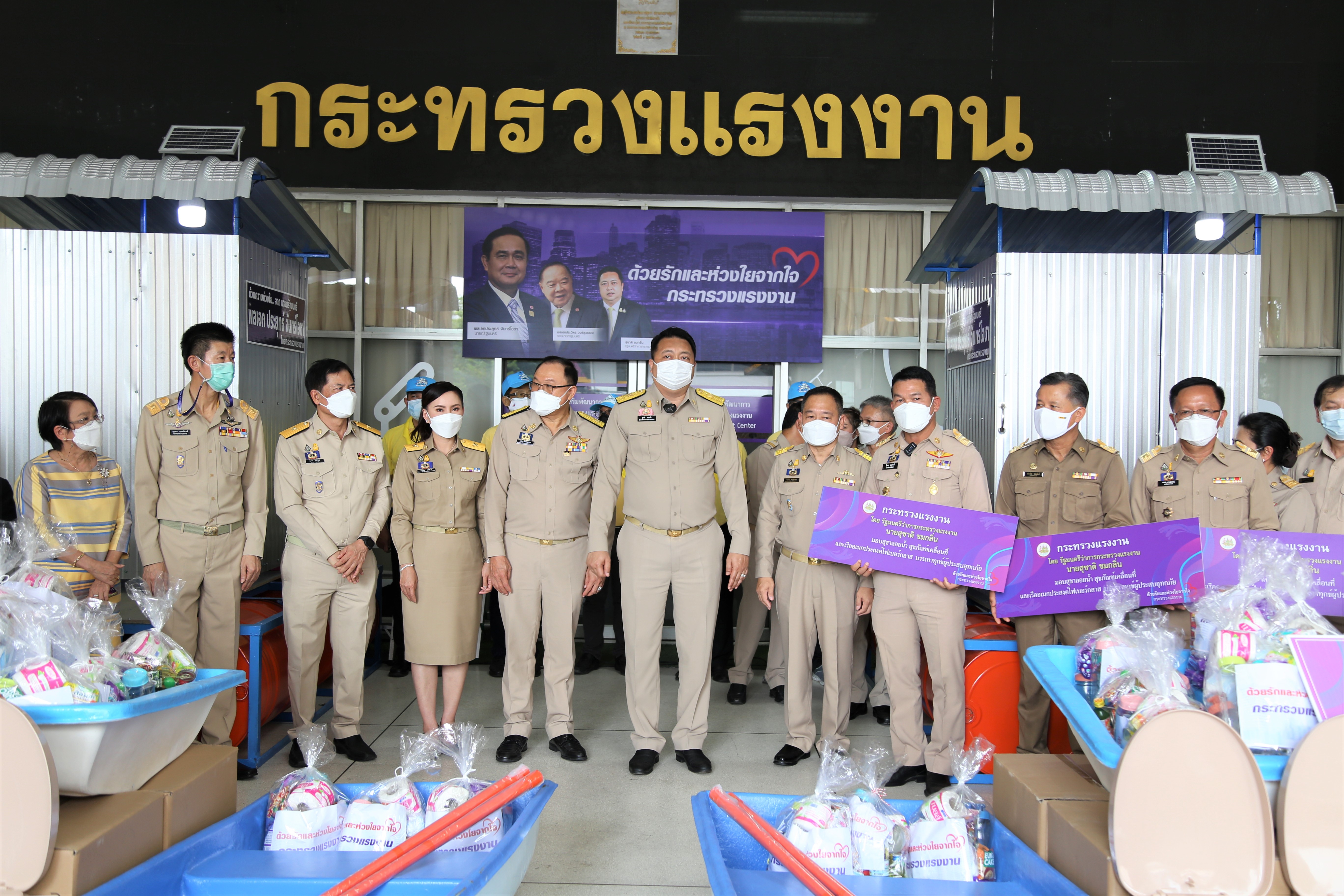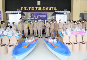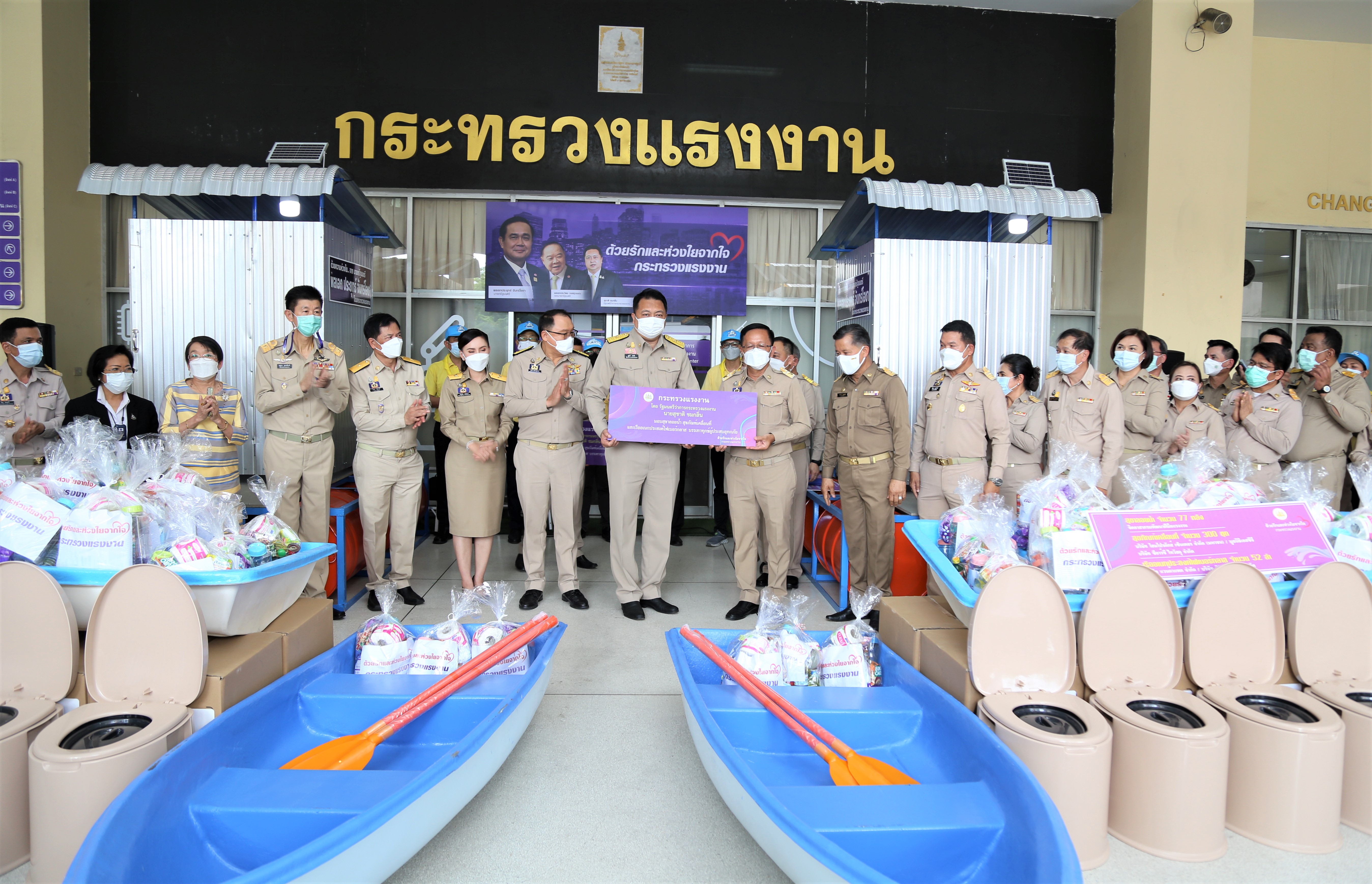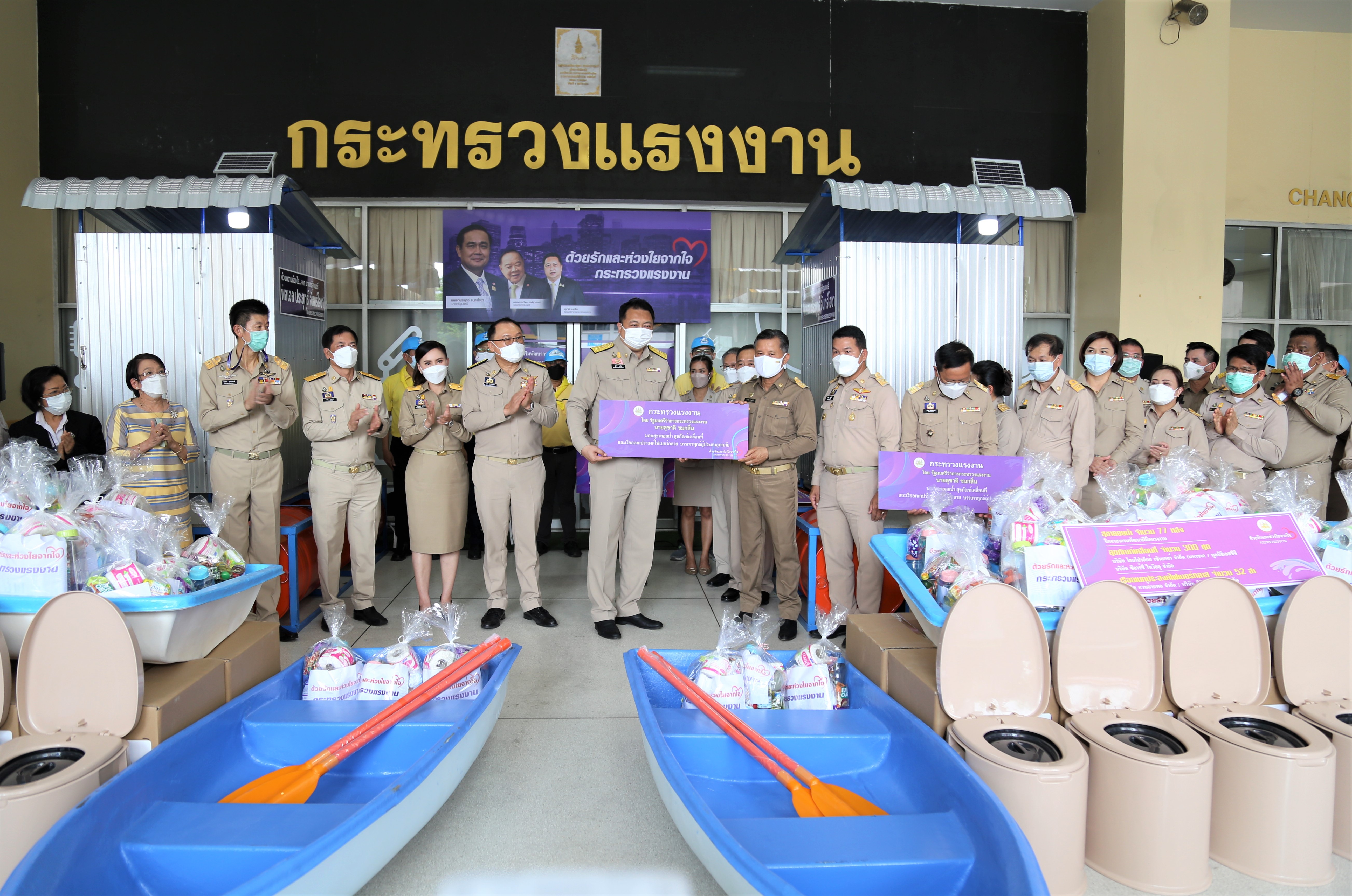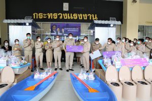 วันที่ 11 ตุลาคม 2564 นายสุชาติ ชมกลิ่น รัฐมนตรีว่าการกระทรวงแรงงาน เป็นประธานในพิธีส่งมอบสุขาลอยน้ำ เพื่อช่วยเหลือประชาชนที่ได้รับผลกระทบจากอุทกภัยในพื้นที่จังหวัดพระนครศรีอยุธยา จำนวน 2 หลัง จังหวัดลพบุรี จำนวน 1 หลัง และจังหวัดชัยนาท จำนวน ๒ หลัง ณ บริเวณชั้น 1 อาคารกระทรวงแรงงาน โดยมี นายสุรชัย ชัยตระกูลทอง ผู้ช่วยรัฐมนตรีประจำกระทรวงแรงงาน นางธิวัลรัตน์ อังกินันทน์ ที่ปรึกษารัฐมนตรีว่าการกระทรวงแรงงาน นายสุเทพ ชิตยวงษ์ เลขานุการรัฐมนตรีว่าการกระทรวงแรงงาน นางเธียรรัตน์ นะวะมะวัฒน์ โฆษกกระทรวงแรงงาน (ฝ่ายการเมือง) นายบุญชอบ สุทธมนัสวงษ์ ปลัดกระทรวงแรงงาน นายประทีป ทรงลำยอง อธิบดีกรมพัฒนาฝีมือแรงงาน และผู้บริหารระดับสูงกระทรวงแรงงาน ร่วมเป็นเกียรติในพิธีดังกล่าว โดยนายสุชาติ กล่าวว่า พลเอก ประยุทธ์ จันทร์โอชา นายกรัฐมนตรีและรัฐมนตรีว่าการกระทรวงกลาโหม และพลเอก ประวิตร วงษ์สุวรรณ รองนายกรัฐมนตรี มีความห่วงใยและได้สั่งการให้กระทรวงแรงงานซึ่งเป็นหน่วยช่วยเหลือแรงงานและพี่น้องประชาชนเข้าช่วยเหลือผู้ที่ได้รับผลกระทบจากพายุโซนร้อนและ ร่องมรสุมทำให้เกิดอุทกภัยในพื้นที่ภาคตะวันออกเฉียงเหนือและภาคกลาง เป็นการเร่งด่วน