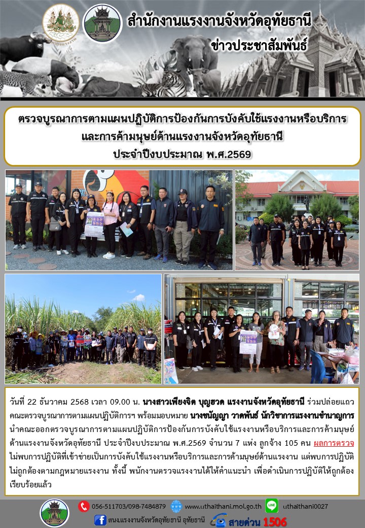 ตรวจบูรณาการตามแผนปฏิบัติการป้องกันการบังคับใช้แรงงานหรือบริการและการค้ามนุษย์ด้านแรงงานจังหวัดอุทัยธานี ประจำปีงบประมาณ พ.ศ.2569