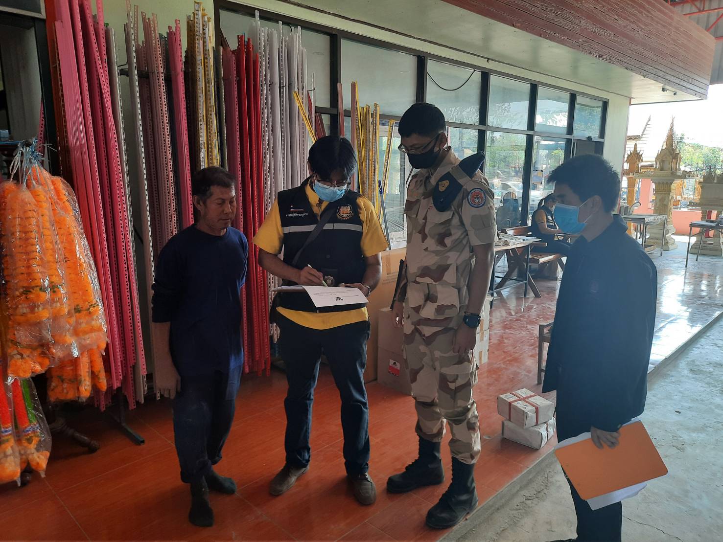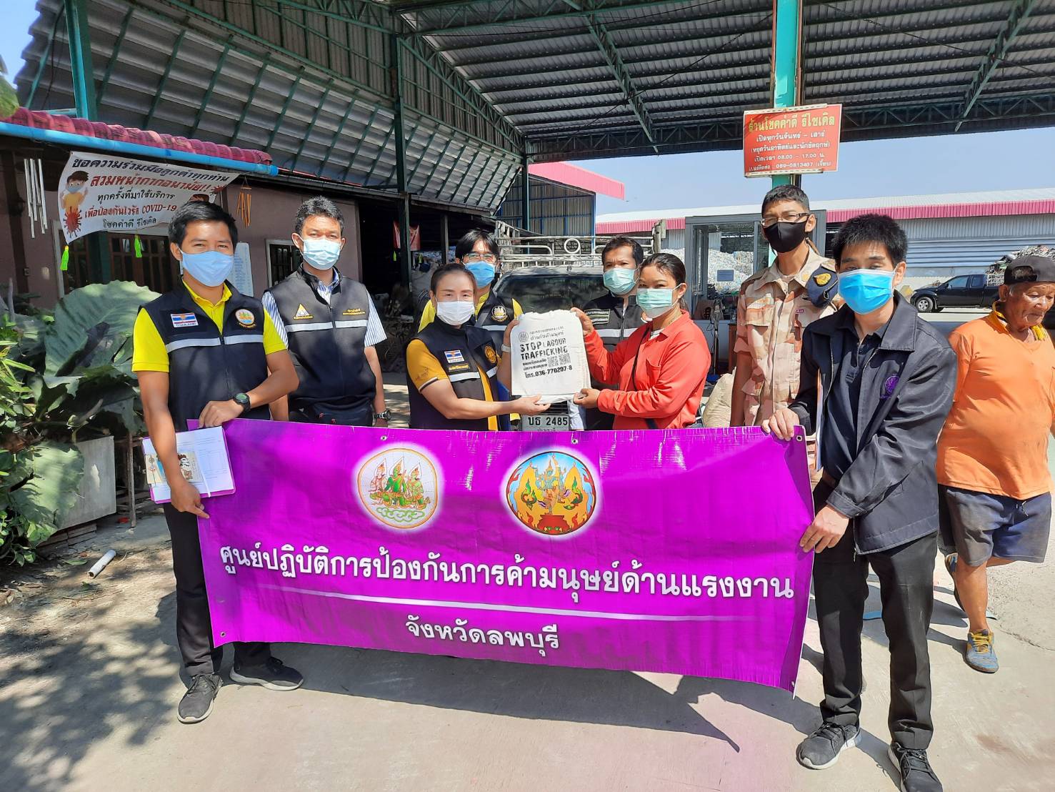 วันพฤหัสบดีที่ 18 กุมภาพันธ์ 2563 เวลา 10.00 น. นางสาวสุกัญญา องค์วิเศษไพบูลย์ แรงงานจังหวัดลพบุรี มอบหมายให้ นายเชน รัตนเสถียร นักวิชาการแรงงานชำนาญการ พร้อมด้วย นายพลากร โฮมแพน เจ้าหน้าที่วิเคราะห์และประมวลผลเบื้องต้น บูรณาการร่วมกับ สำนักงานจัดหางานจังหวัดลพบุรี สำนักงานพัฒนาฝีมือแรงงานลพบุรี สำนักงานสวัสดิการและคุ้มครองแรงงานจังหวัดลพบุรี สำนักงานประกันสังคมจังหวัดลพบุรี และที่ทำการปกครองอำเภอโคกเจริญ ตรวจบูรณาการการป้องกันการบังคับใช้แรงงานหรือบริการและการค้ามนุษย์ด้านแรงงาน จังหวัดลพบุรี ประจำปีงบประมาณ พ.ศ.2564 ครั้งที่ 3/2564 ณ พื้นที่อำเภอโคกเจริญ จังหวัดลพบุรี ในสถานประกอบการกลุ่มเสี่ยง จำนวน 4 แห่ง ลูกจ้าง 30 คน (แรงงานไทย 24 คน และแรงงานสัญชาติเมียนมา 6 คน) ได้แก่ ร้านทองใบคอนกรีต (กิจการก่อสร้าง), นางกล้วย นิ่มมา (กิจการเกษตรไร่อ้อย), ร้านจริงใจสมุนไพร (กิจการผลิตภัณฑ์สมุนไพร) และร้านโชคดีรีไซด์เคิล (กิจการรีไซเคิล) ผลการออกตรวจ ไม่พบการกระทำความผิด มีใบอนุญาตถูกต้องโดยเจ้าหน้าที่ได้ให้คำแนะนำเรื่องการประกันสังคม ในการนี้ เจ้าหน้าที่ได้รณรงค์ประชาสัมพันธ์โครงการสัตว์ปลอดโรคคนปลอดภัย จากโรคพิษสุนัขบ้าฯ และรณรงค์ประชาสัมพันธ์ป้องกันและแก้ไขปัญหายาเสพติดให้กับสถานประกอบการดังกล่าว