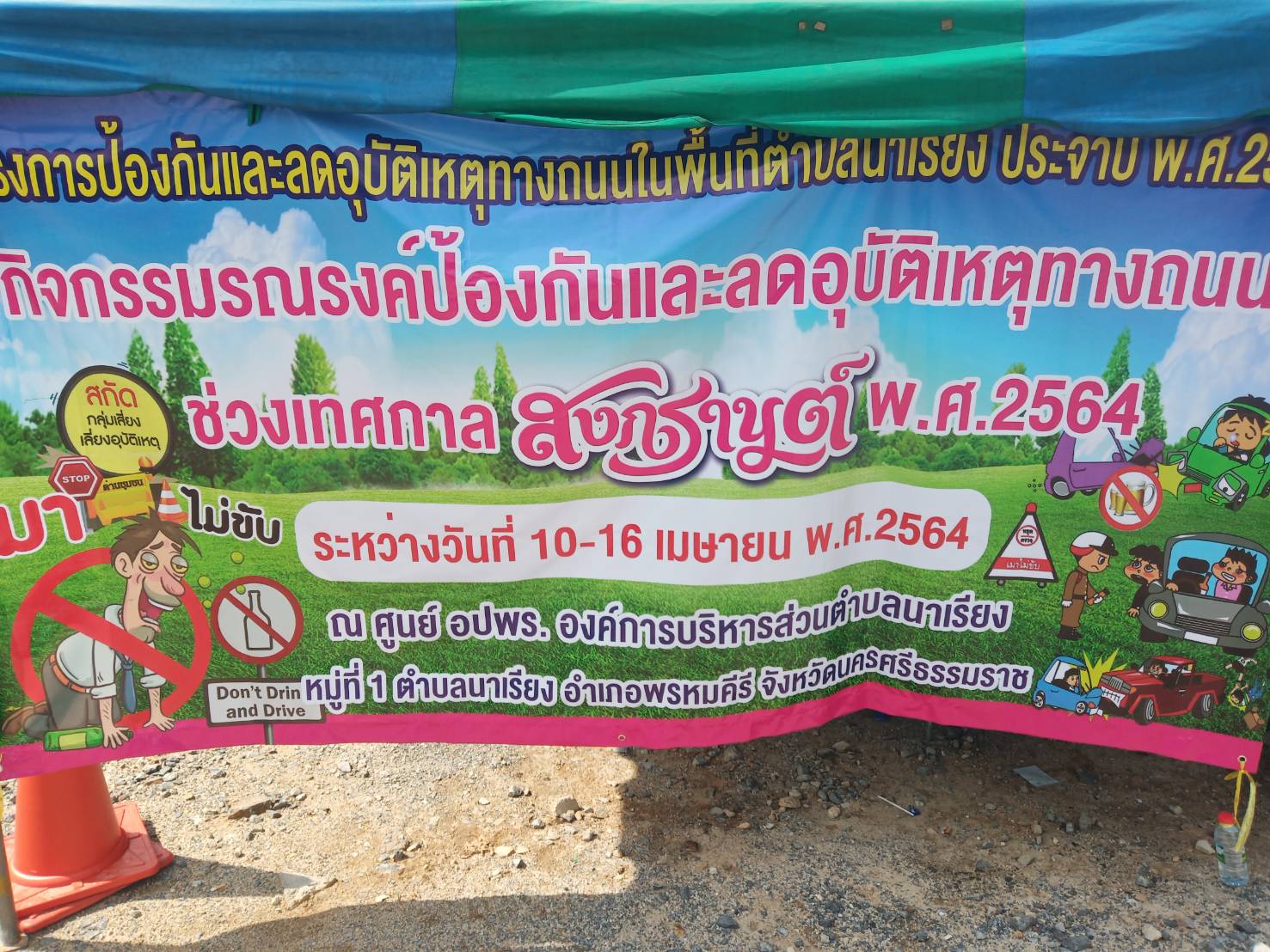 วันที่ 16 เมษายน 2564 ส่วนราชการสังกัดกระทรวงแรงงานจังหวัดนครศรีธรรมราช ตรวจเยี่ยม จุดตรวจ/ด่านตรวจหลัก และจุดบริการ/ด่านชุมชน ในการดำเนินงานป้องกันและลดอุบัติเหตุทางถนน ช่วงเทศกาลสงกรานต์ พ.ศ.2564 ระหว่างวันที่ 10 –16 เมษายน 2564 ประกอบด้วย ชุมชนเทศบาลตำบลพรหมคีรี ที่พักสายตรวจบ้านนาเสน ด่านชุมชนหน้าวัดท่านายหนี ชุมชนตำบลทอนหงส์ ชุมชนตําบลพรหมโลก ศูนย์ อปพร.อบต.นาเรียง ชุมชนบ้านสากเหล็ก อำเภอพรหมคีรี จังหวัดนครศรีธรรมราช