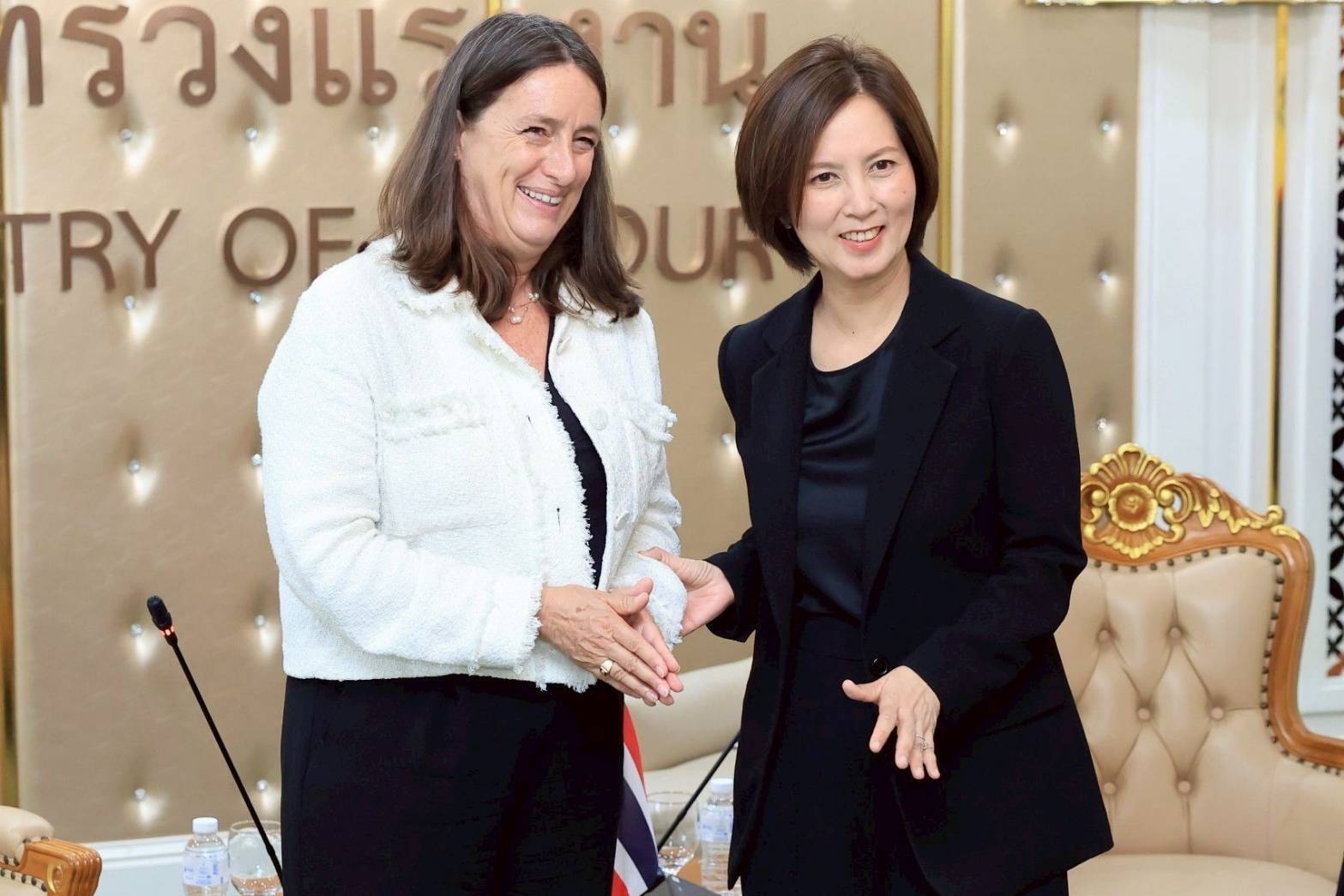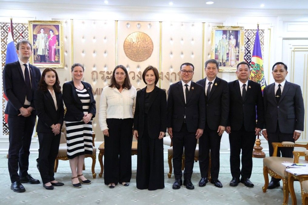 วันที่ 18 กุมภาพันธ์ 2569 เวลา 10.00 น. นางลุยซา ราแกร์ (Luisa Ragher) เอกอัครราชทูตวิสามัญผู้มีอำนาจเต็มแห่งสหภาพยุโรปประจำประเทศไทยและคณะเข้าพบนางสาวตรีนุช เทียนทอง รัฐมนตรีว่าการกระทรวงแรงงาน เพื่อหารือแนวทางความร่วมมือการขับเคลื่อน ด้านแรงงานระหว่างประเทศไทยและสหภาพยุโรป โดยมี นายสันติ นันตสุวรรณ รองปลัดกระทรวงแรงงาน นายศักดินาถ สนธิศักดิ์โยธิน ผู้ช่วยปลัดกระทรวงแรงงาน นายมงคล สงคราม รองอธิบดีกรมการจัดหางาน นายสุรสิทธิ์ ศรีแก้ว รองอธิบดีกรมสวัสดิการและคุ้มครองแรงงาน และหน่วยงานที่เกี่ยวข้อง เข้าร่วม ณ ห้องจัตุมงคล ชั้น 6 อาคารกระทรวงแรงงาน ร่วมให้การต้อนรับ
