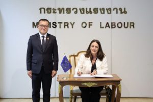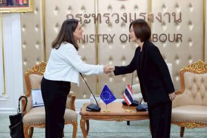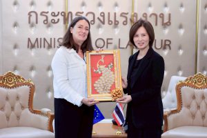 รมว.แรงงาน ได้เน้นย้ำถึงความสัมพันธ์อันดีระหว่างประเทศไทยและสหภาพยุโรป โดยเฉพาะด้านแรงงานที่มีมาอย่างใกล้ชิดในหลายกรอบ เช่น Labour Dialogue กับ DG EMPL ซึ่งประเทศไทยจะเป็นเจ้าภาพจัดการประชุมระดับสูงด้านแรงงานระหว่างประเทศไทย – อียู ครั้งที่ 4 ในวันที่ 11-12 มีนาคม 2569 กรอบความตกลงว่าด้วยความเป็นหุ้นส่วนและความร่วมมือรอบด้าน หรือ PCA ผ่านคณะทำงานผู้เชี่ยวชาญ (Specialised working groups) ด้านสิทธิมนุษยชนและธรรมาภิบาล และการเจรจาความตกลงการค้าเสรี (FTA) ซึ่งมีข้อบทด้านแรงงานเป็นการเฉพาะ และพร้อมพัฒนาความร่วมมือด้านแรงงานร่วมกันในอนาคต เพื่อผลักดันประเด็นด้านสิทธิมนุษยชน และสิทธิแรงงาน รวมถึงส่งเสริมการโยกย้ายถิ่นฐานด้านแรงงานที่เป็นปกติและปลอดภัย อันเป็นการยกระดับมาตรฐานแรงงานให้เป็นไปตามมาตรฐานสากล เพิ่มโอกาสให้แรงงานไทยเข้าสู่ตลาดงานของสหภาพยุโรป