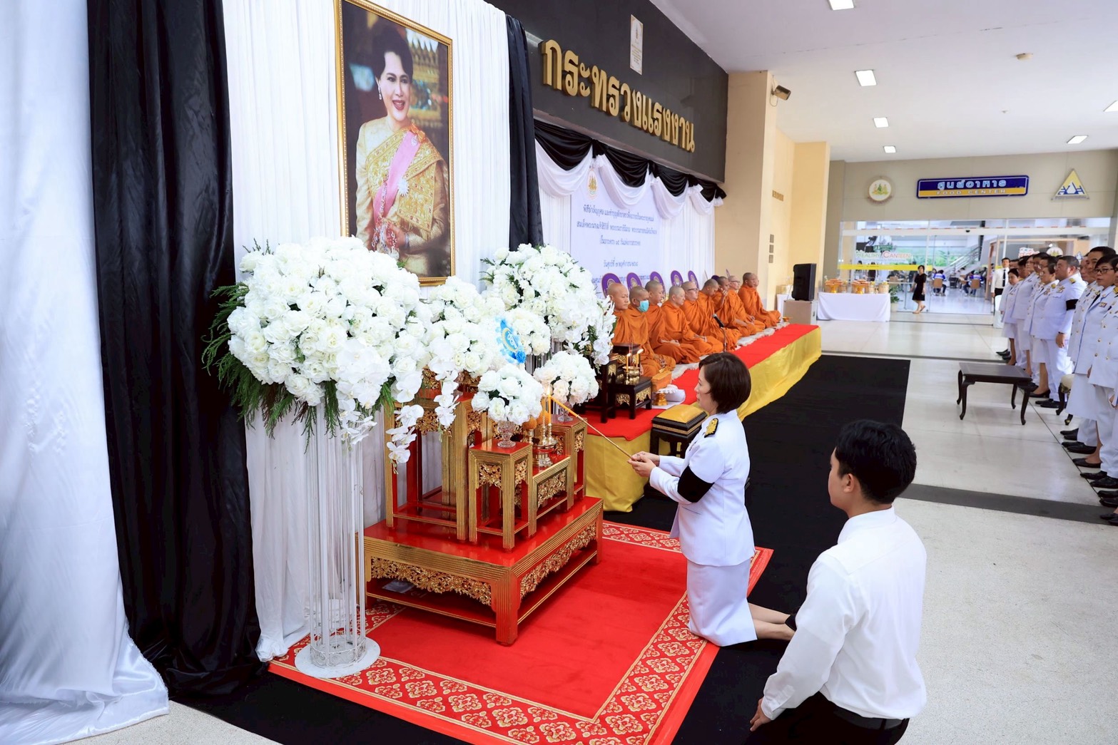 วันที่ 7 พฤศจิกายน 2568 เวลา 08.00 น. นางสาวตรีนุช เทียนทอง รัฐมนตรีว่าการกระทรวงแรงงาน เป็นประธานในพิธีบำเพ็ญกุศล และทำบุญตักบาตร เพื่อถวายเป็นพระราชกุศลแด่สมเด็จพระนางเจ้าสิริกิติ์ พระบรมราชินีนาถ พระบรมราชชนนีพันปีหลวง ในวาระครบ 15 วัน (ปัณรสมวาร) แห่งการสวรรคตเพื่อแสดงความอาลัยและน้อมรำลึกในพระมหากรุณาธิคุณอันหาที่สุดมิได้ โดยมี พันตำรวจโท วรรณพงษ์ คชรักษ์ ปลัดกระทรวงแรงงาน พร้อมด้วยผู้บริหารระดับสูง ข้าราชการ และเจ้าหน้าที่กระทรวงแรงงาน เข้าร่วมพิธีโดยพร้อมเพรียงกัน ณ บริเวณศูนย์ส่งเสริมพัฒนาการบุตรของบุคลากรกระทรวงแรงงาน และลานด้านหน้าศาลาพระพุทธสุทธิธรรมบพิตร