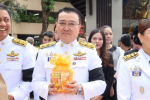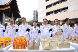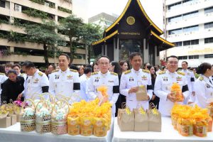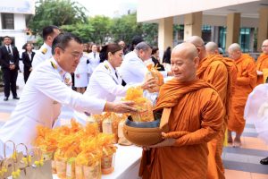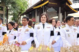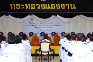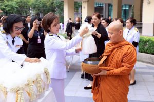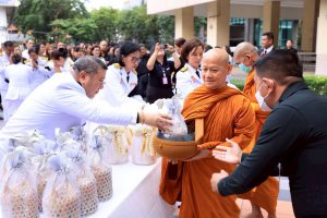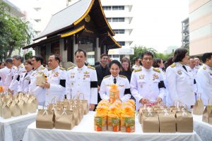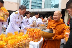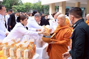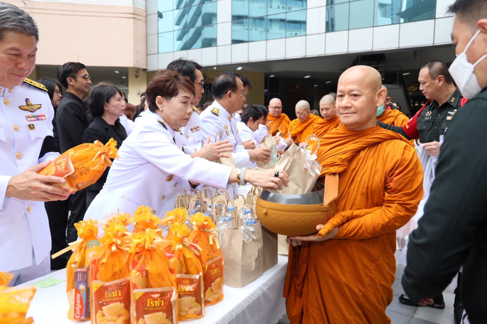 ภายหลังเสร็จสิ้นพิธีสงฆ์ นางสาวตรีนุช เทียนทอง รัฐมนตรีว่าการกระทรวงแรงงาน พร้อมด้วยผู้บริหารระดับสูง ข้าราชการ และเจ้าหน้าที่กระทรวงแรงงาน ร่วมตักบาตรข้าวสารอาหารแห้งถวายพระสงฆ์ จำนวน 10 รูป เพื่อถวายเป็นพระราชกุศลโดยพร้อมเพรียงกัน ซึ่งบรรยากาศเป็นไปด้วยความสงบ สำนึกในพระมหากรุณาธิคุณ และความจงรักภักดีอย่างล้นพ้น